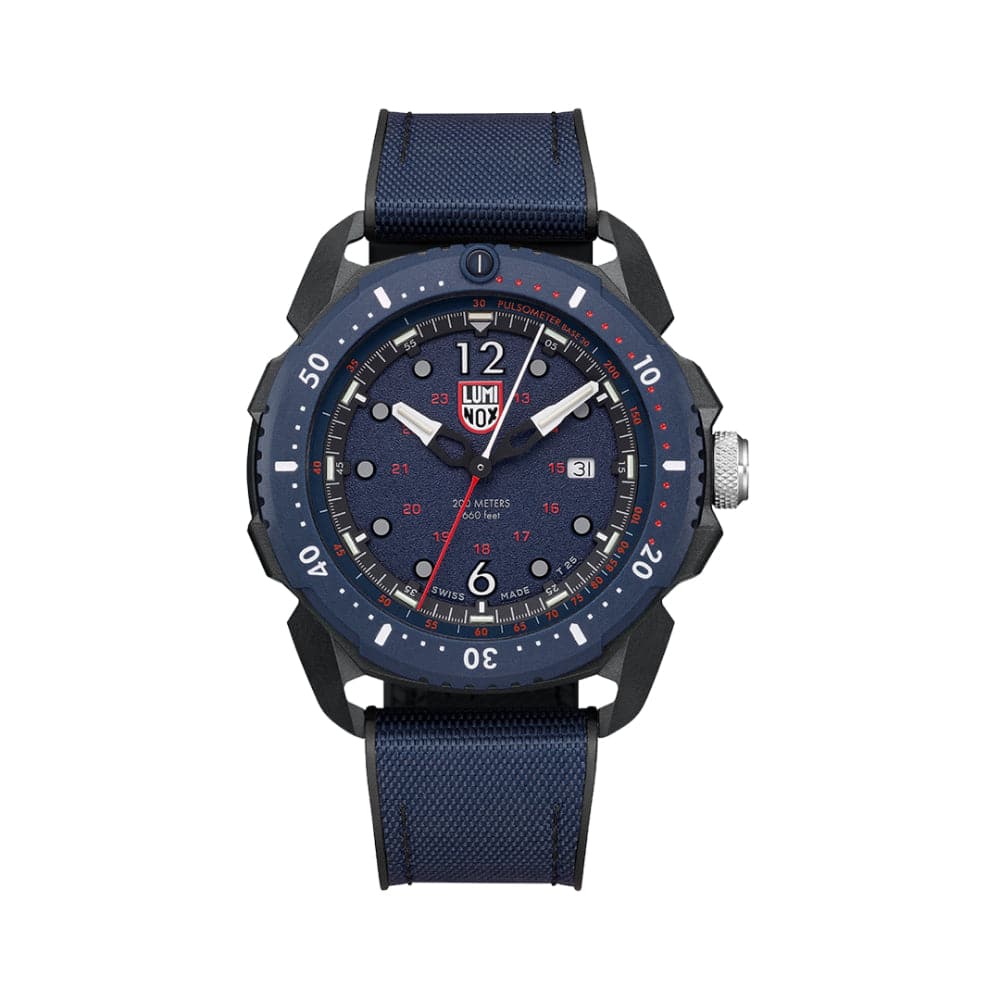 The robust ICE SAR watch with CARBONOX™ bezel and buckle comes with a pulsometer, making it possible to swiftly measure the pulse of oneself or a patient, thanks to the extra second hand and indexes on the dial ring. The blue watch with red details on the dial comes with a blue rubber strap with blue textile on top (tone in tone stitching).