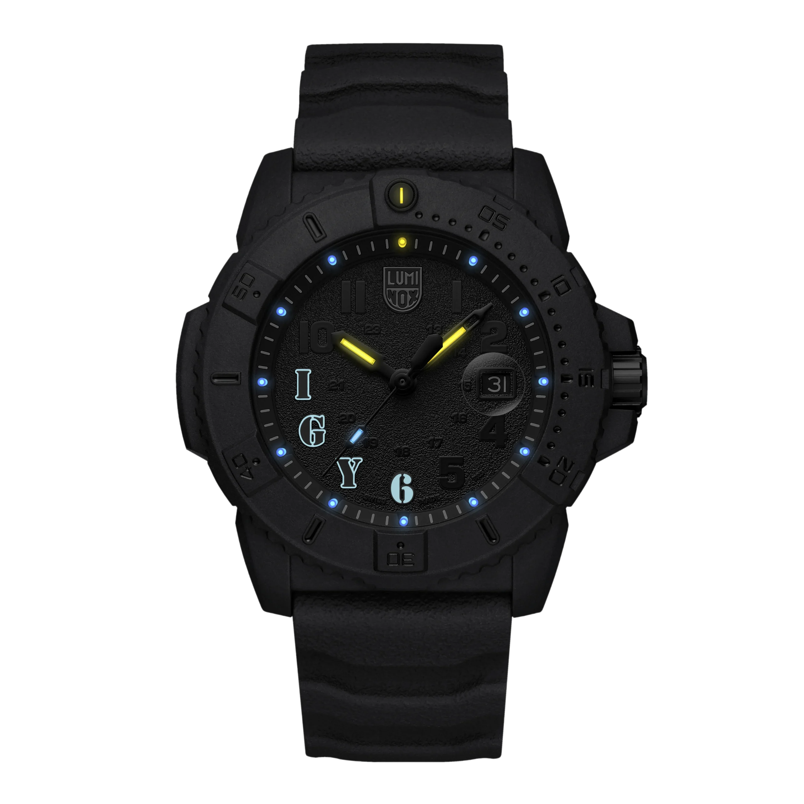 Crafted to honor the unwavering spirit of the Navy SEALs, the Luminox Limited Edition Navy Seal Foundation Black Dial Watch XS.3611.IGY6.NSF is a masterclass in tactical design and durability. Featuring a robust 45mm CARBONOX™ case, this men’s watch offers lightweight strength built for extreme conditions. The sleek black dial, protected by scratch-resistant sapphire crystal, showcases luminous “I G Y 6” markings and cutting-edge Luminox Light Technology for unmatched visibility in darkness. Powered by precise Swiss quartz movement and water-resistant up to 200 meters, it combines elite performance with rugged style. A black rubber strap ensures all-day comfort, whether in action or off duty. Limited to just 1006 pieces worldwide, this watch is a bold symbol of loyalty and precision in the world of premium timepieces.