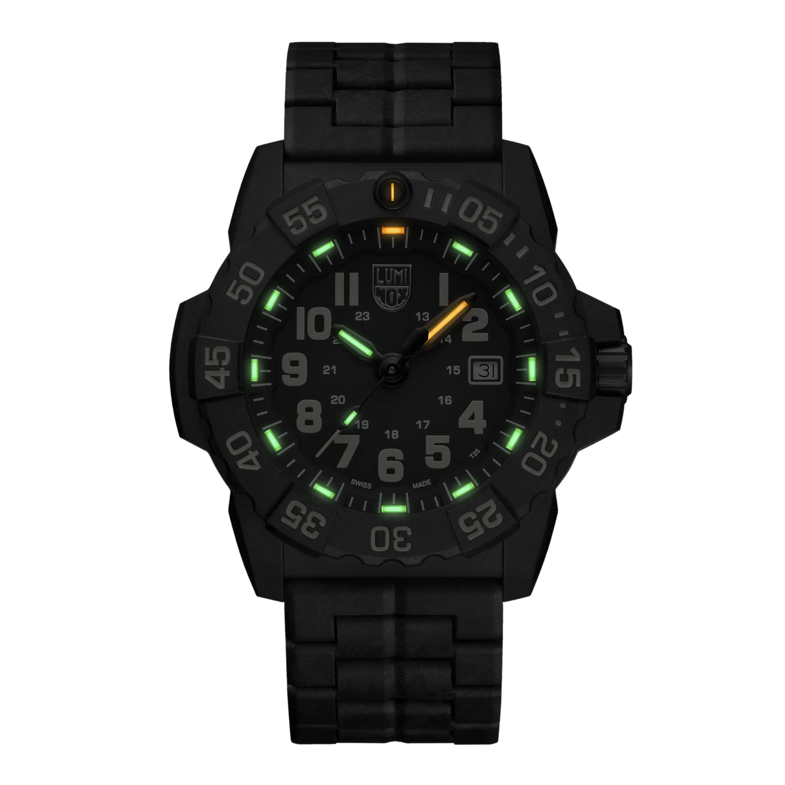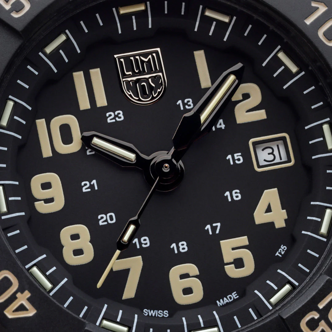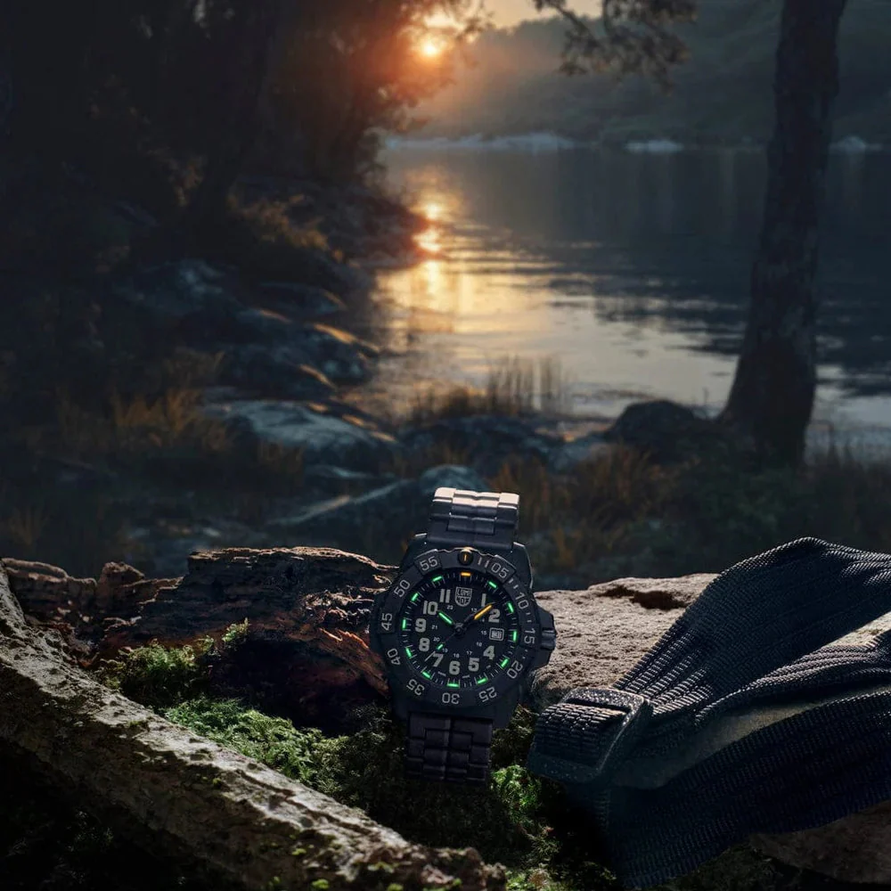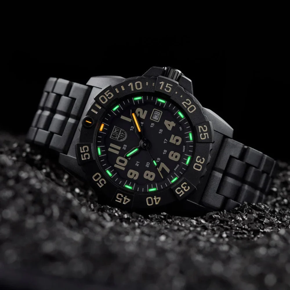 Precision is paramount in the design of the Luminox Navy Seal Black Dial Diving Watch. The uni-directional rotating bezel allows for accurate time tracking, while the screw-down stainless-steel case back reinforces the watch’s durability, making it a reliable companion for any mission. What truly sets this watch apart is the innovative Luminox Light Technology (LLT), which guarantees visibility in any lighting condition for up to 25 years. This self-powered illumination system means you can trust your watch to deliver legibility without the need for an external light source or battery recharge.