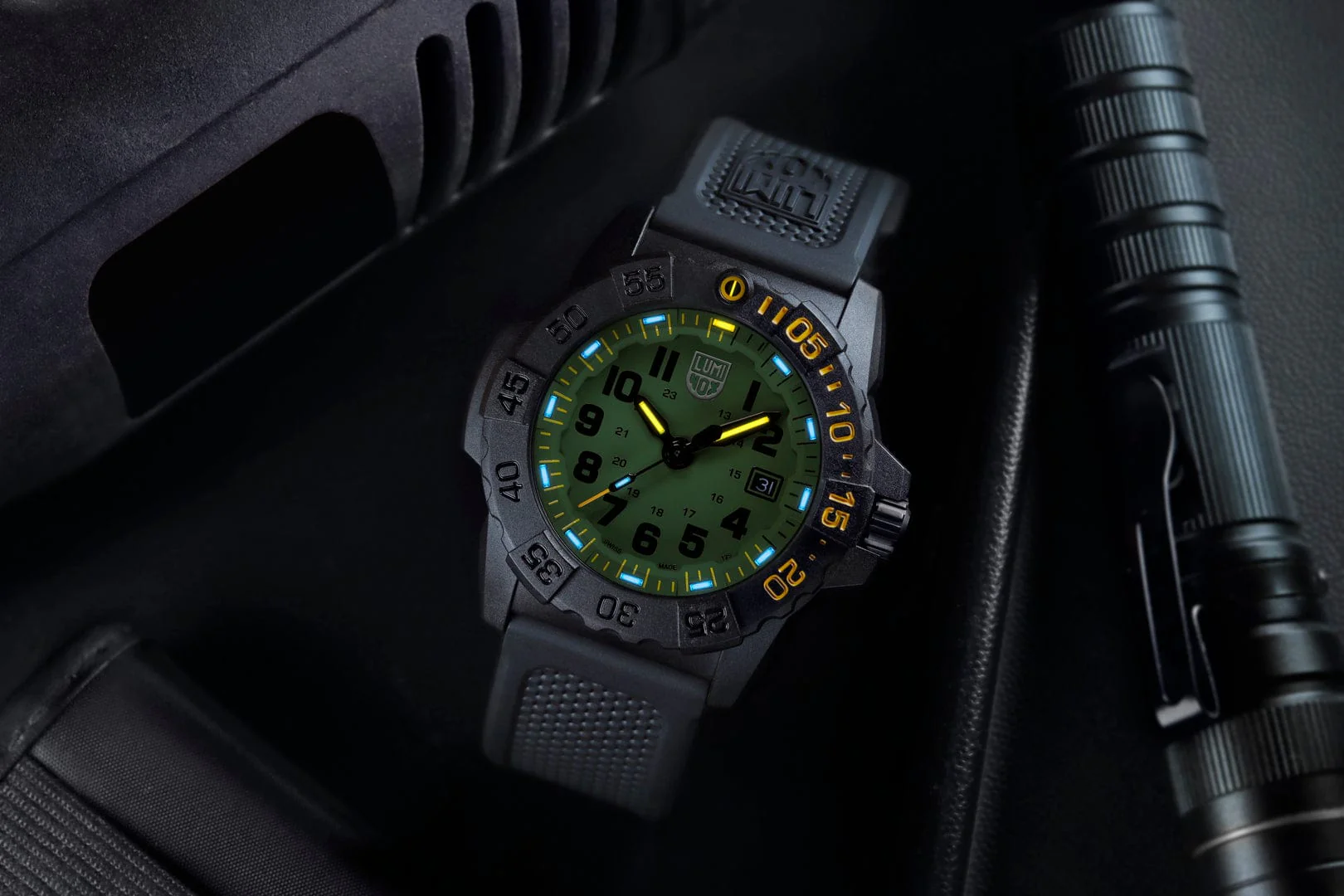 Crafted for real-world use, this watch is water-resistant up to 200 meters, making it an ideal companion for both underwater missions and land-based adventures. The hardened mineral crystal protects the dial from scratches, while Luminox Light Technology ensures continual visibility in total darkness, functioning for up to 25 years without a battery or light source. The ice-blue and yellow illumination seamlessly ties into the Navy SEAL Foundation’s emblem, proudly engraved on the case back, adding a meaningful layer of authenticity and reverence.