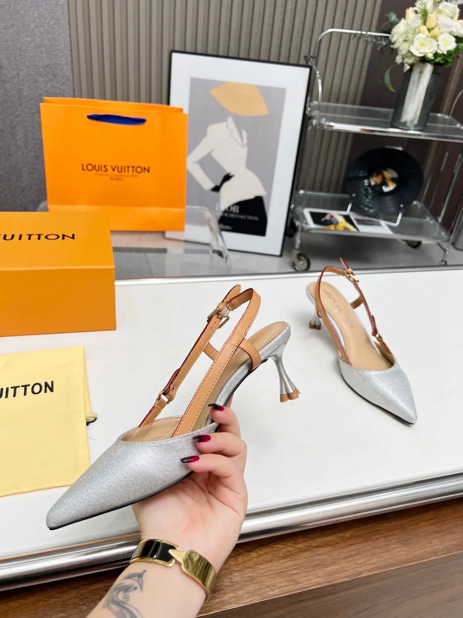 LV Blossom Slingback Pump 55mm White Embroidered fabric 218286