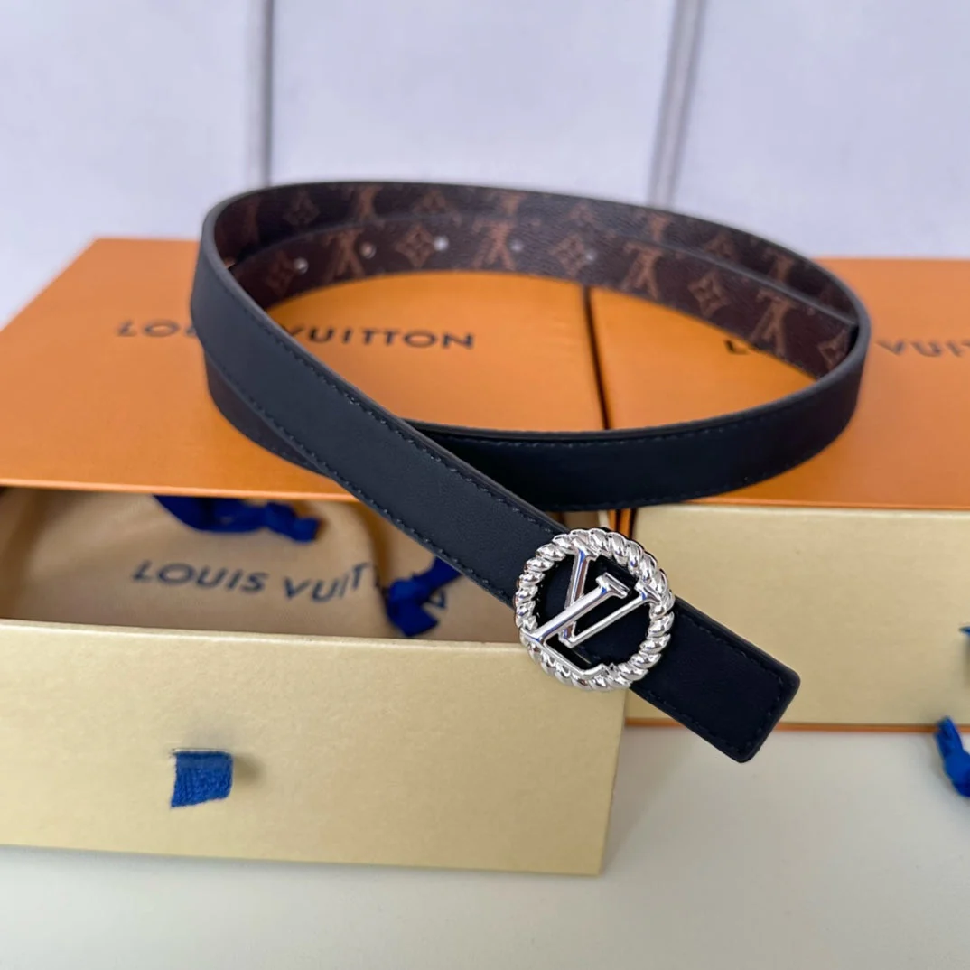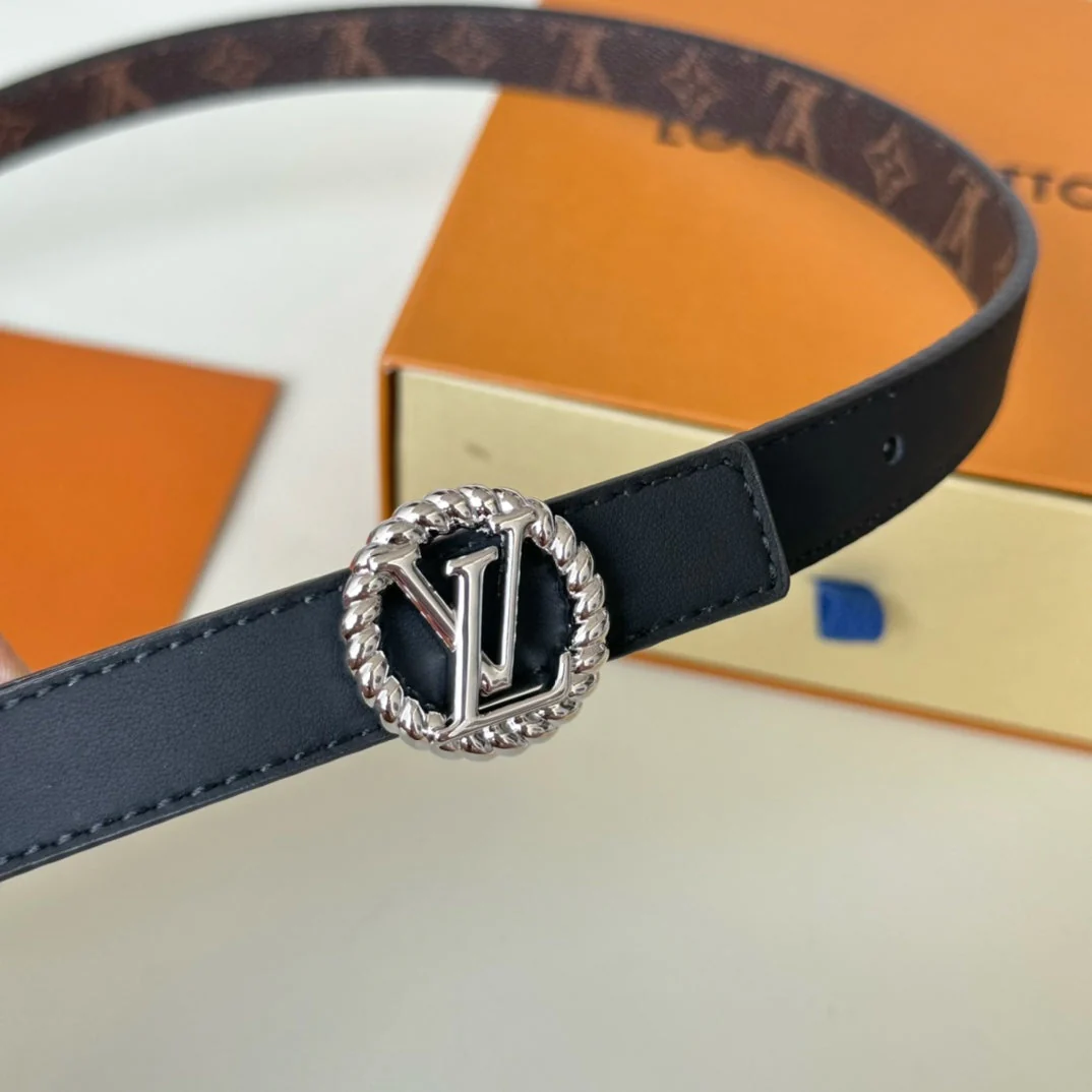 LV Circle Nautical 20mm Reversible Square End Tip Belt Silver Buckle Navy Blue Brown lambskin