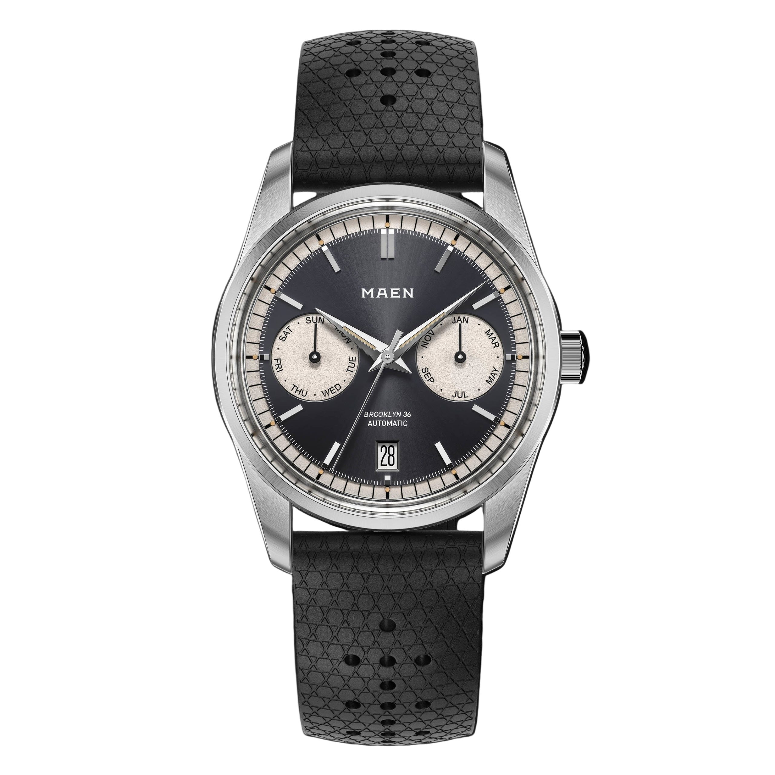 The dial is definitely one of the highlights of the Brooklyn 36. We spent lots of time finding the right balance between design and legibility to house the full triple calendar complication.