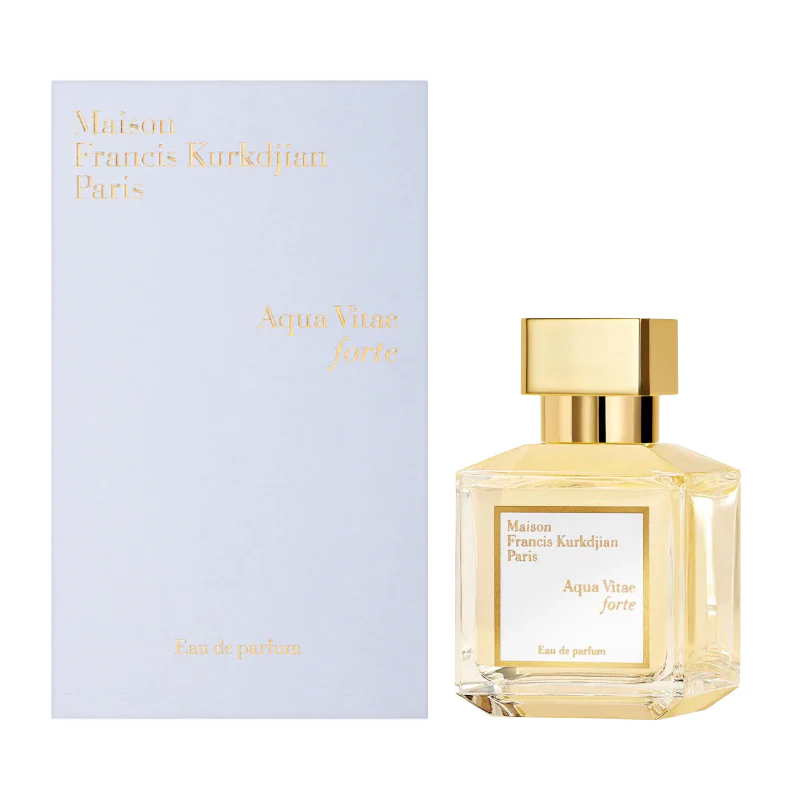 Discover a fragrance that encapsulates the essence of life with the Maison Francis Kurkdjian Aqua Vitae Forte 70ml Eau De Parfum. This exquisite scent is saturated with light and heat, embodying a lively interplay of warmth from days past and fresh nights ahead. It’s a sensual journey that etches a memory of intimacy and connection.