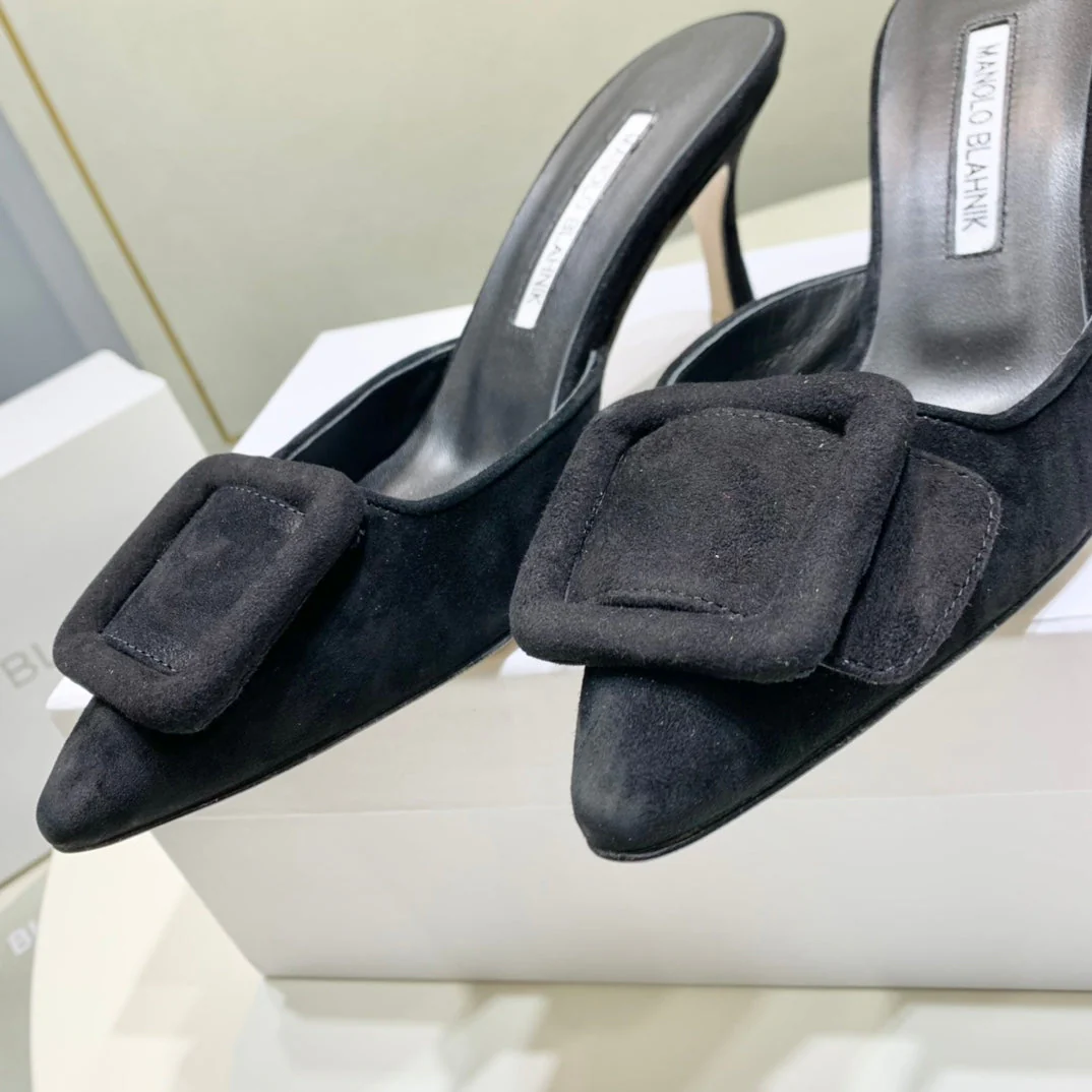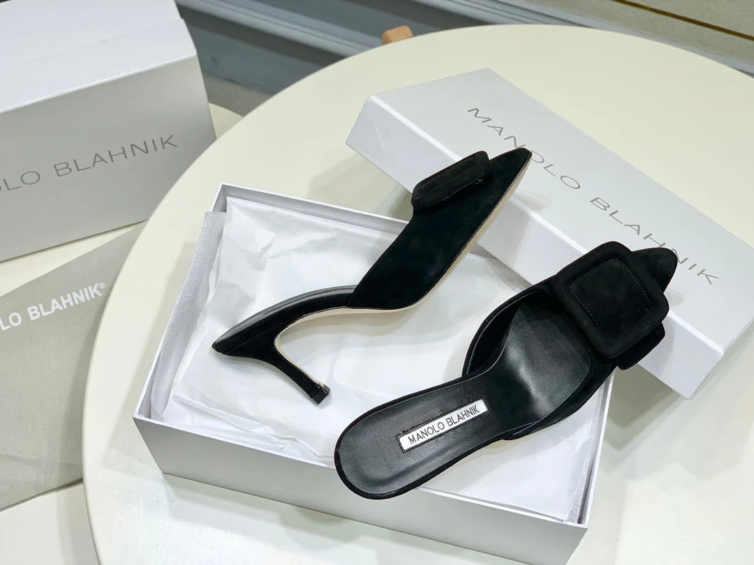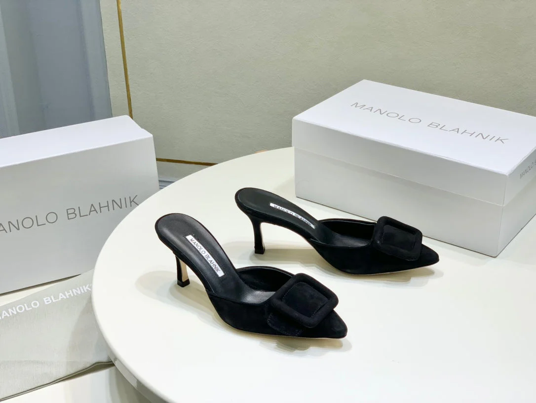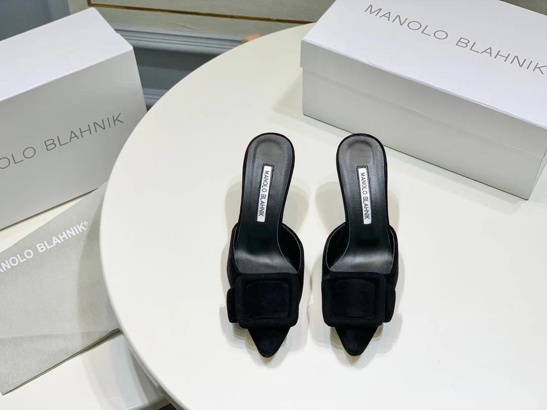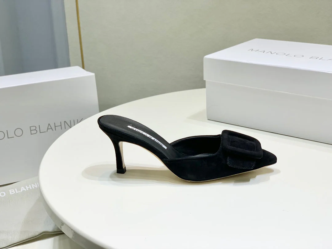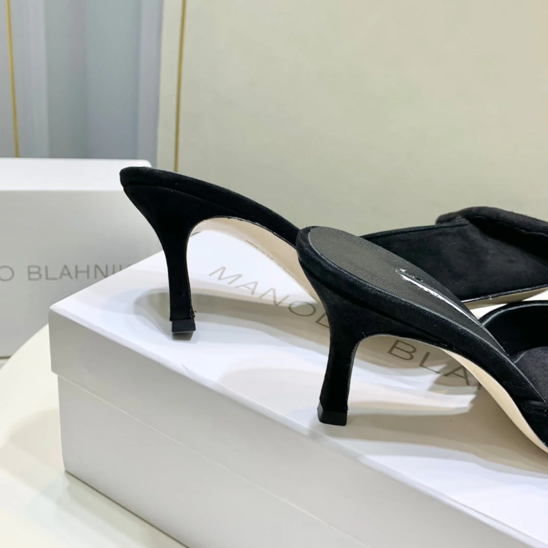 Manolo Mules 7cm Black Suede Leather Bottom 451190