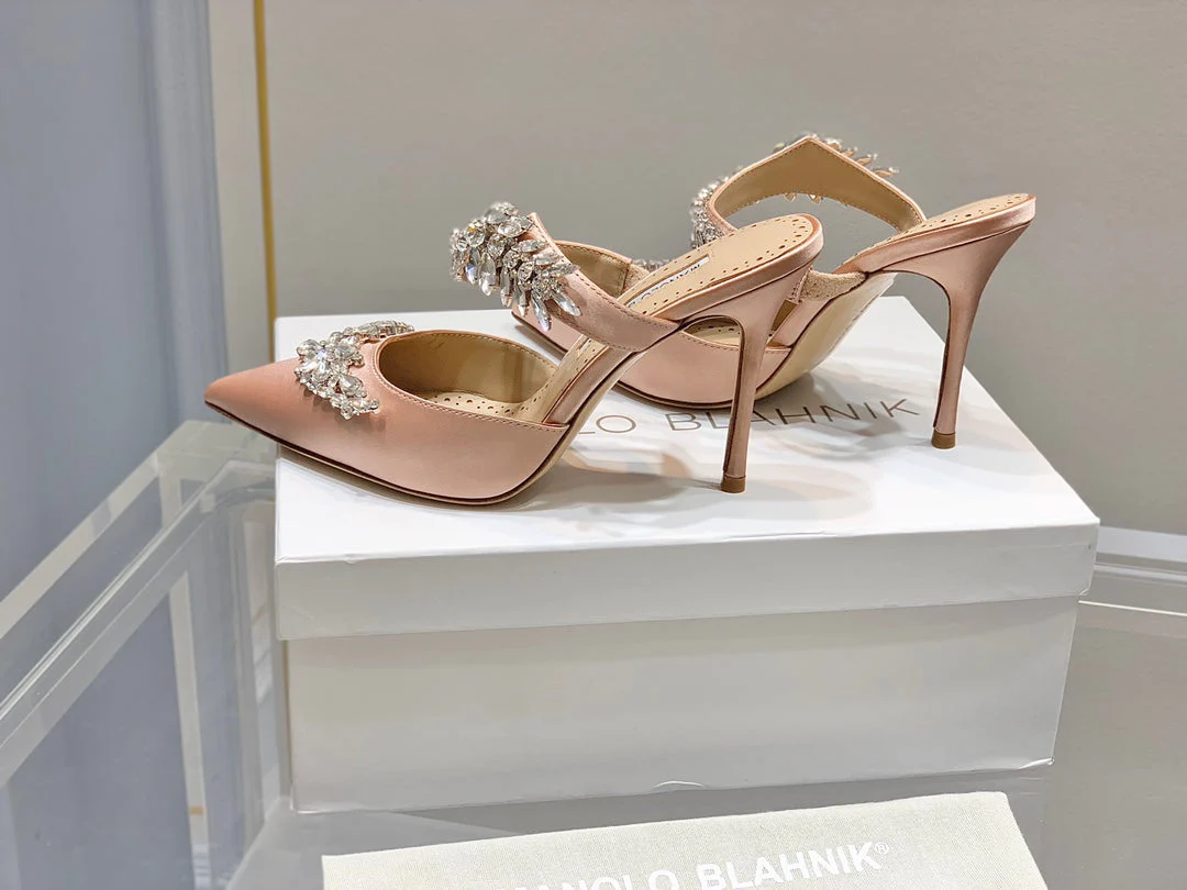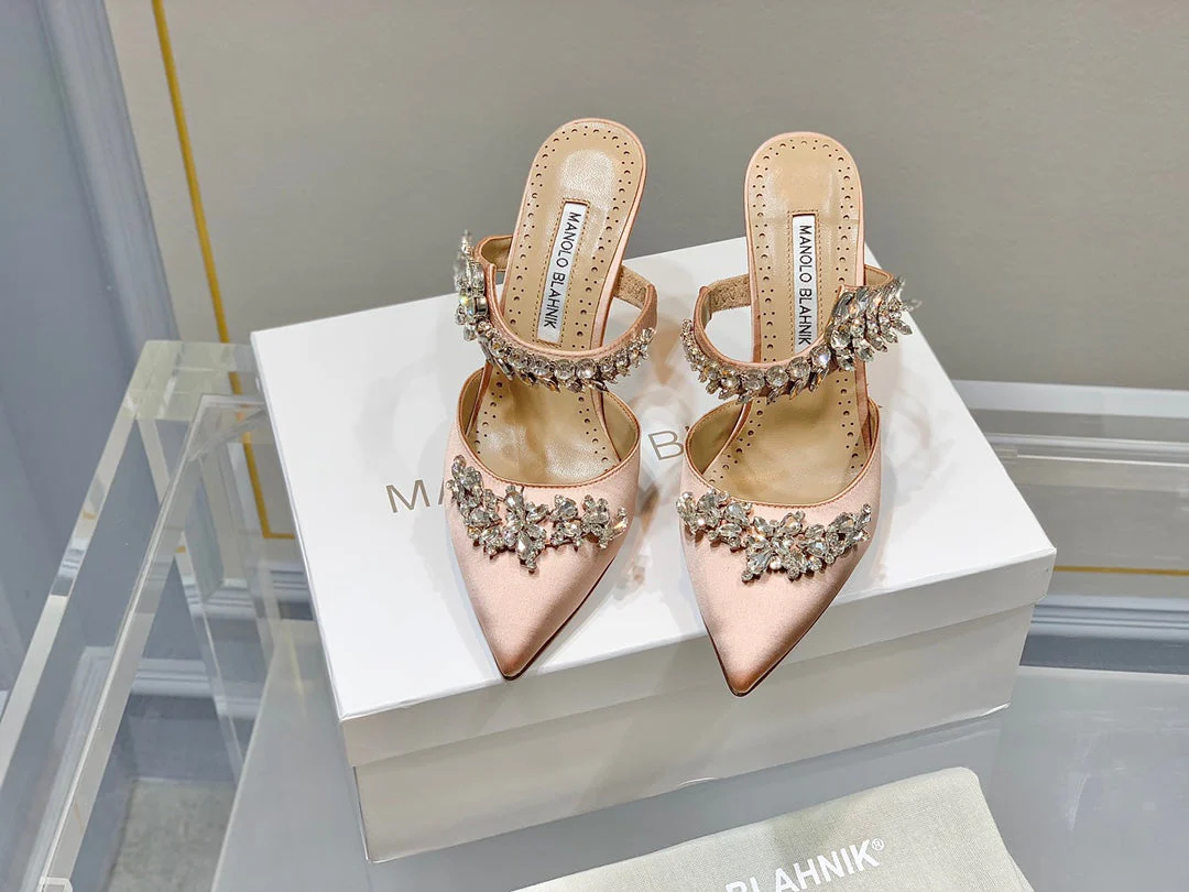 Manolo Mules Crystal Pink Silk Satin 219386