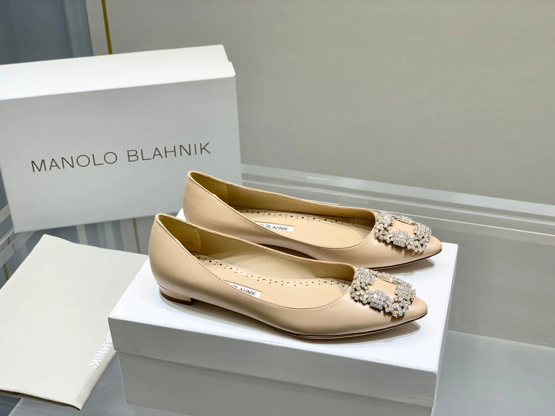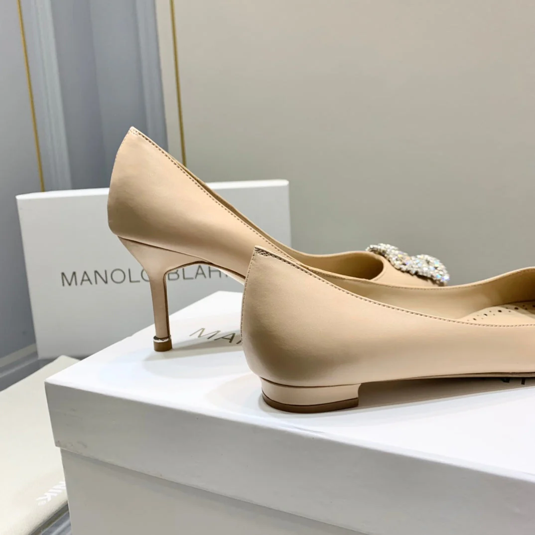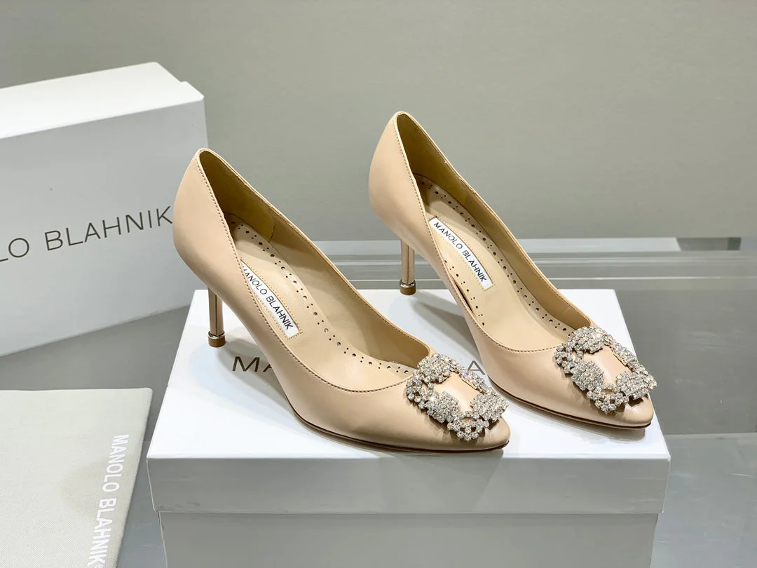 Manolo Snowflake Buckle Pumps Beige Cowhide 204509