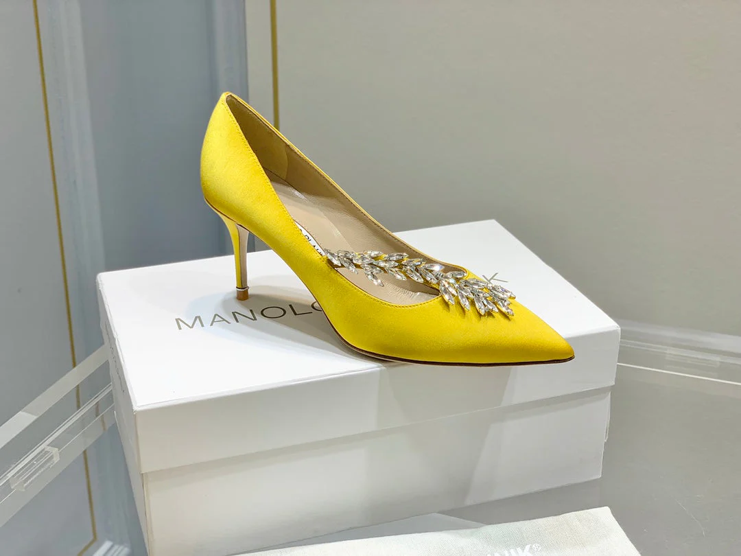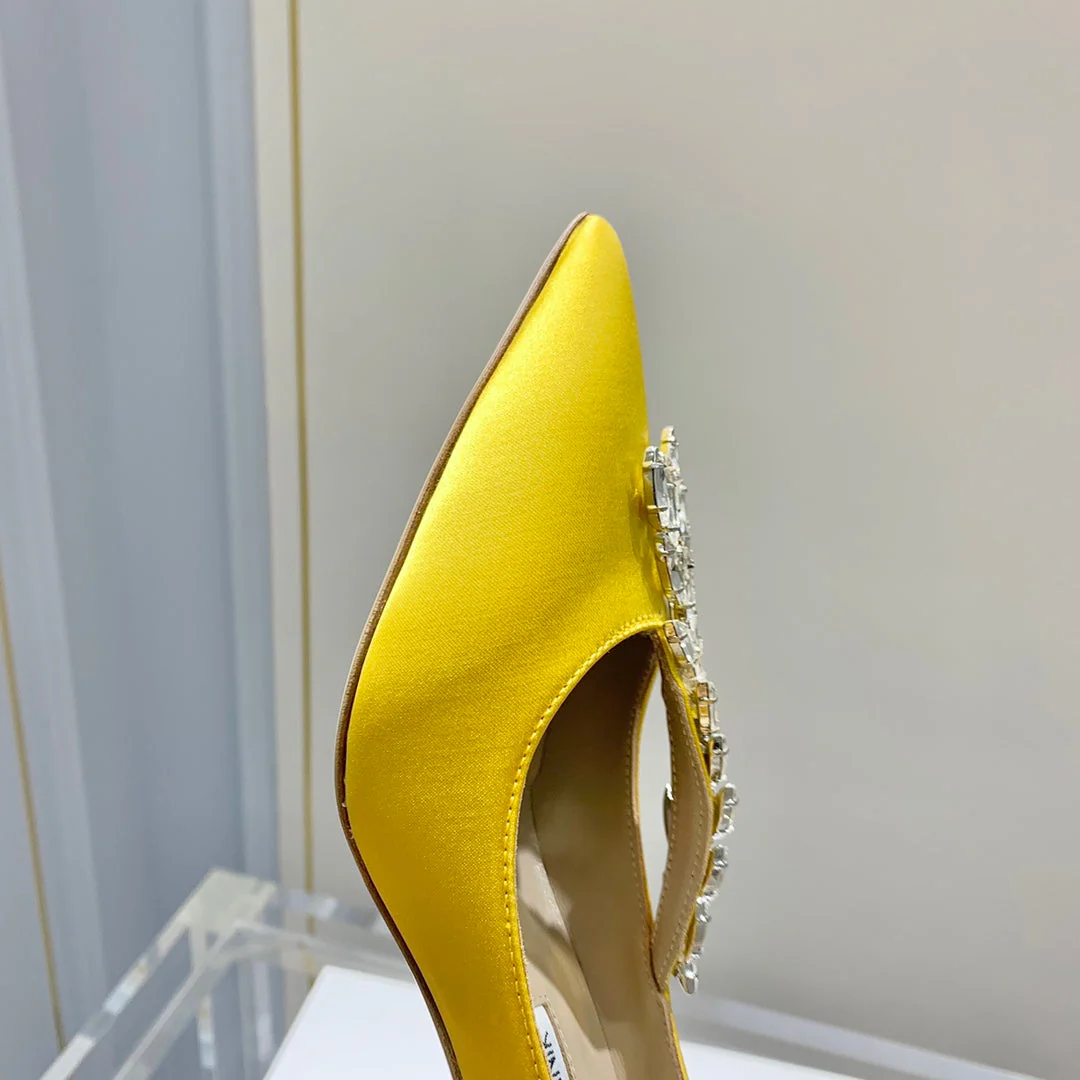 Manolo Wheat Ear Rhinestone High Heels Pumps Yellow Silk Fabric 327450