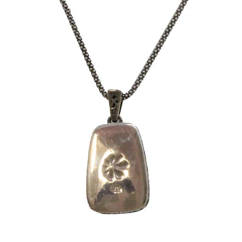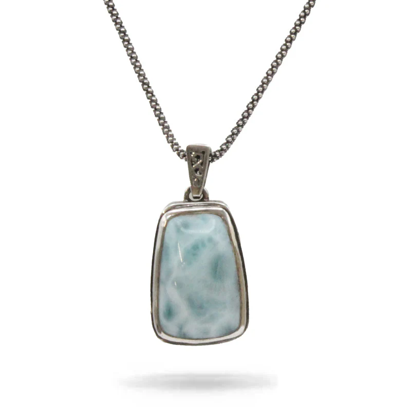 A beautifully detailed sterling silver necklace, including a polished Larimar gemstone, a gentle and classic reminder of the cool Caribbean ocean breeze.