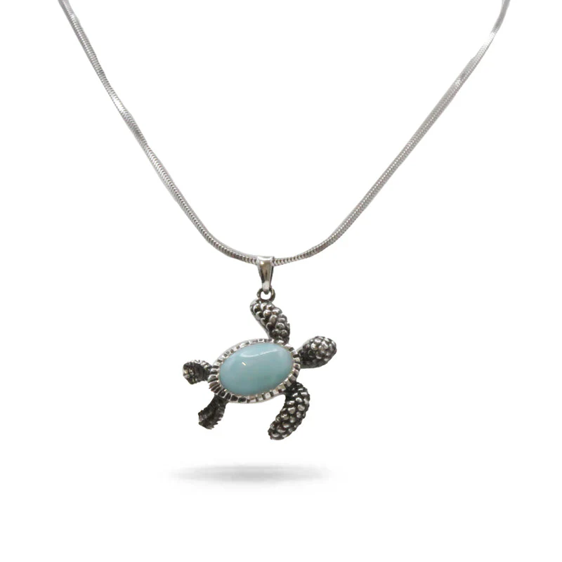 Marahlago Larimar Turtle Sterling Silver Necklace