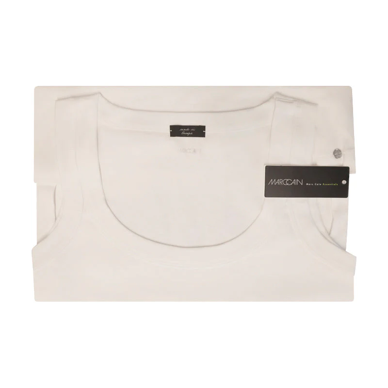The Marc Cain Women’s Tank Top in white effortlessly combines style with comfort, making it a versatile addition to your wardrobe. With a clean-cut design crafted from premium cotton and a touch of spandex, this tank top delivers the perfect balance of flexibility and breathability. Its round-neck cutout pairs seamlessly with the fitted silhouette, offering a chic yet understated look.