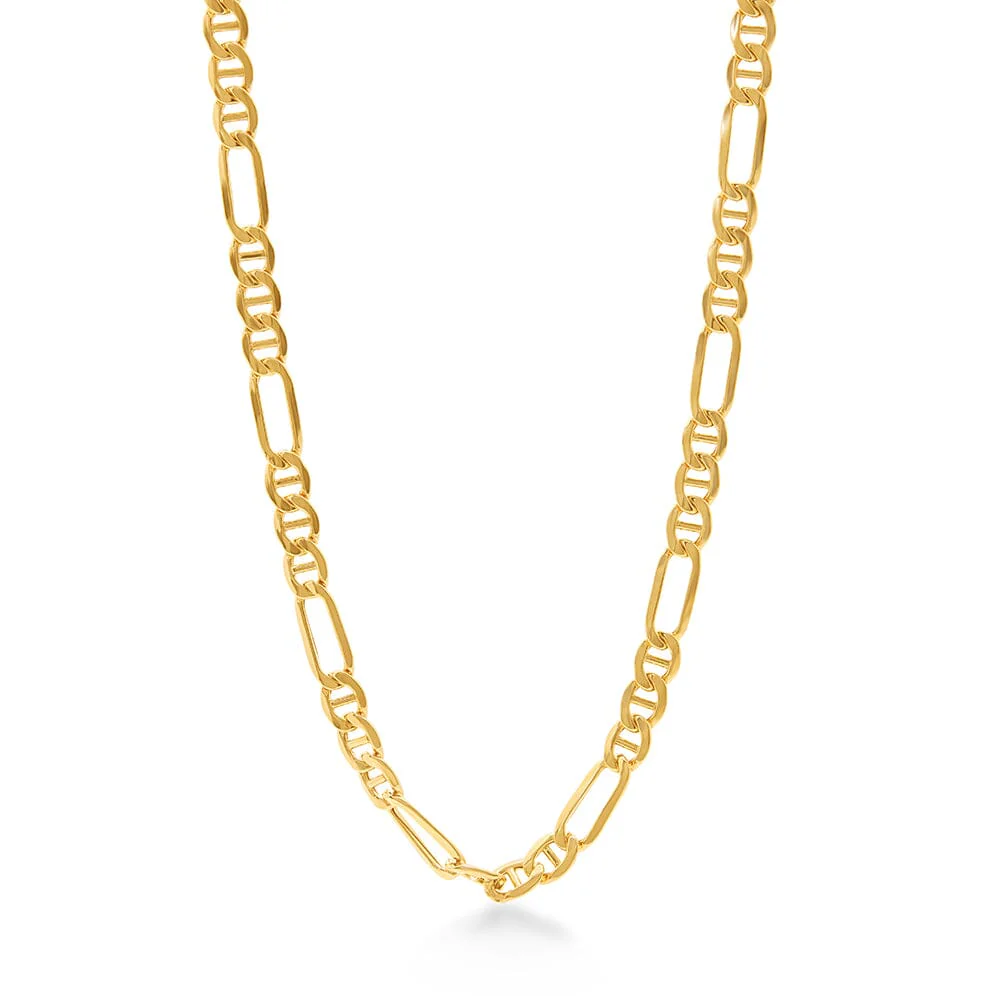 This Mariner Figaro Chain Necklace 45cm in 9kt Yellow Gold features a beautiful mariner figaro link design. This necklace is 45cm long.