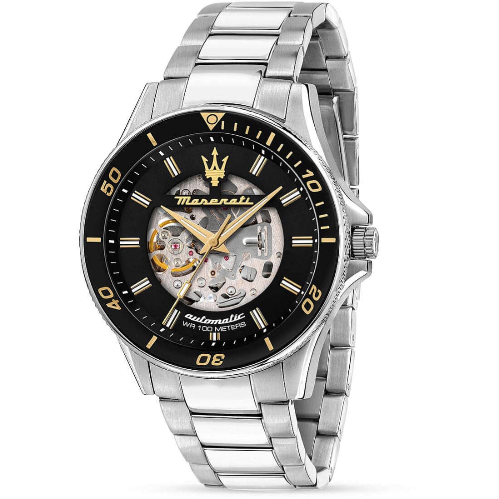 Maserati Sfida R8823140002 is a practical accessory for men. It will look great with both casual and elegant outfits. The heart of the watch is a precise automatic movement. The case is made of stainless steel of high quality covered with a black coating.A silver bracelet made of steel is easy to use and perfectly matches other elements of the watch. The black dial is covered by a mineral crystal, which is renowned for its high resistance to shocks and scratches that are caused during everyday use. A water resistance of 100 meters means the watch can be worn when swimming and freediving.