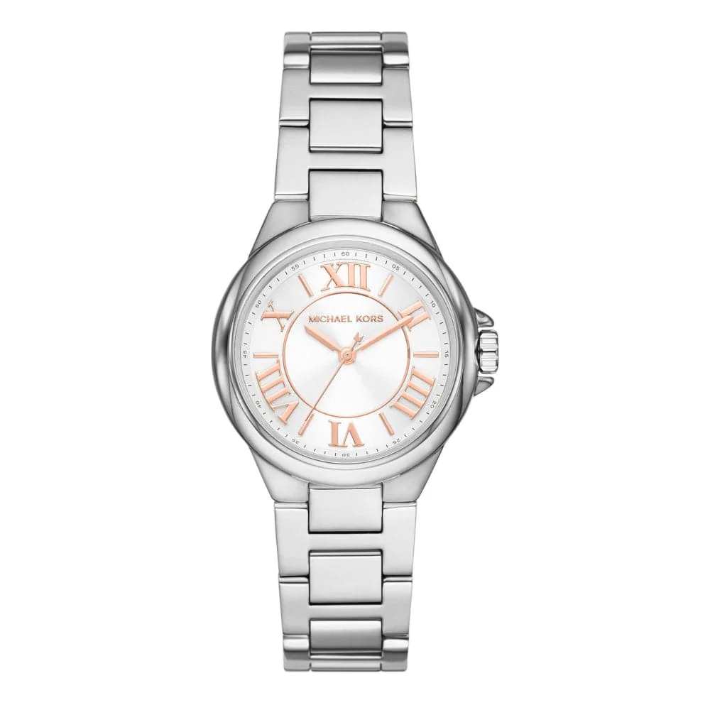 Michael Kors Camille MK7259 is an incredible attractive Ladies watch. Case is made out of Stainless Steel and the White dial gives the watch that unique look. The features of the watch include (among others) a chronograph. 50 metres water resistancy will protect the watch and allows it to be submerged in water for periods, so can be used for swimming and fishing. It is not recommended for high impact water sports. The watch is shipped with an original box and a guarantee from the manufacturer.