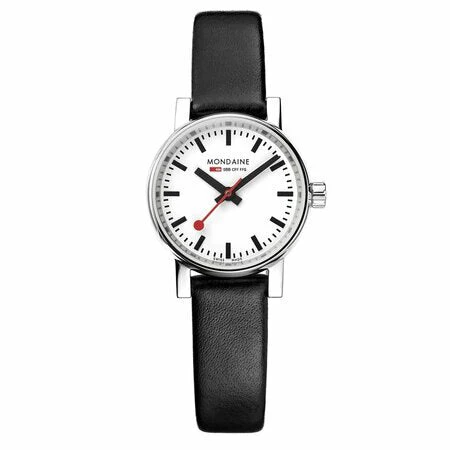 Small and subtle: The evo2 petite may be small, but it big on comfort and precision. Despite its 26-mm-wide case, this discreet watch is designed with all the details of a Mondaine Official Swiss Railway Watch: iconic design, exceptional legibility, a compact and durable stainless steel case, scratch-resistant sapphire crystal, and a comfortable black strap made from soft, real leather. The perfect watch for the stylish woman of today.