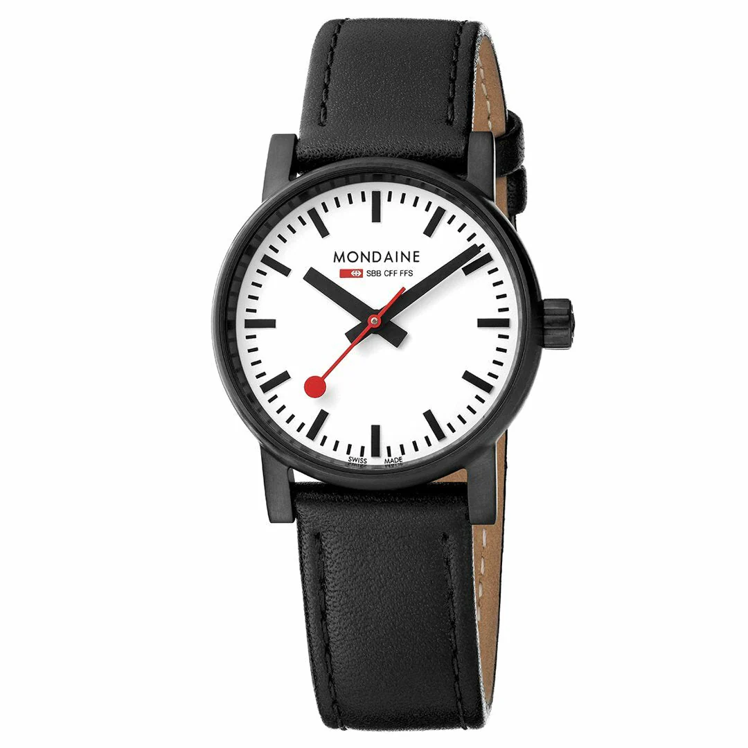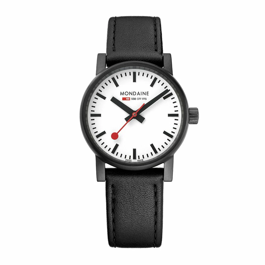A somewhat different watch for discerning women. This women watch is made with a black stainless steel case that immediately draws your attention to its iconic dial. Its 30-mm-wide case is large but extremely feminine. This watch features all the stylish elements of Mondaine core and classic design. Done entirely in black, this watch is a discreet yet powerful reminder of your understated nature.