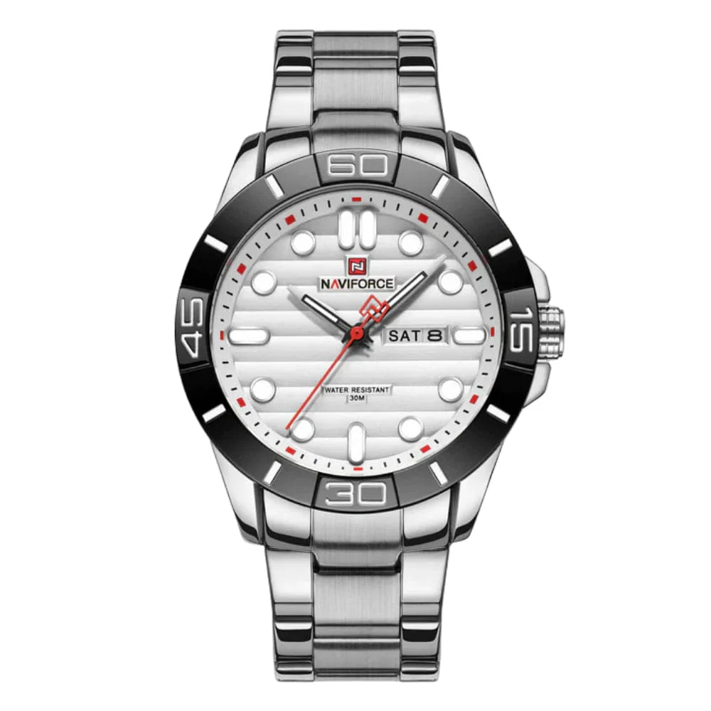 Naviforce White Dial Silver Stainless Steel Strap Men Watch NF9198 S/W