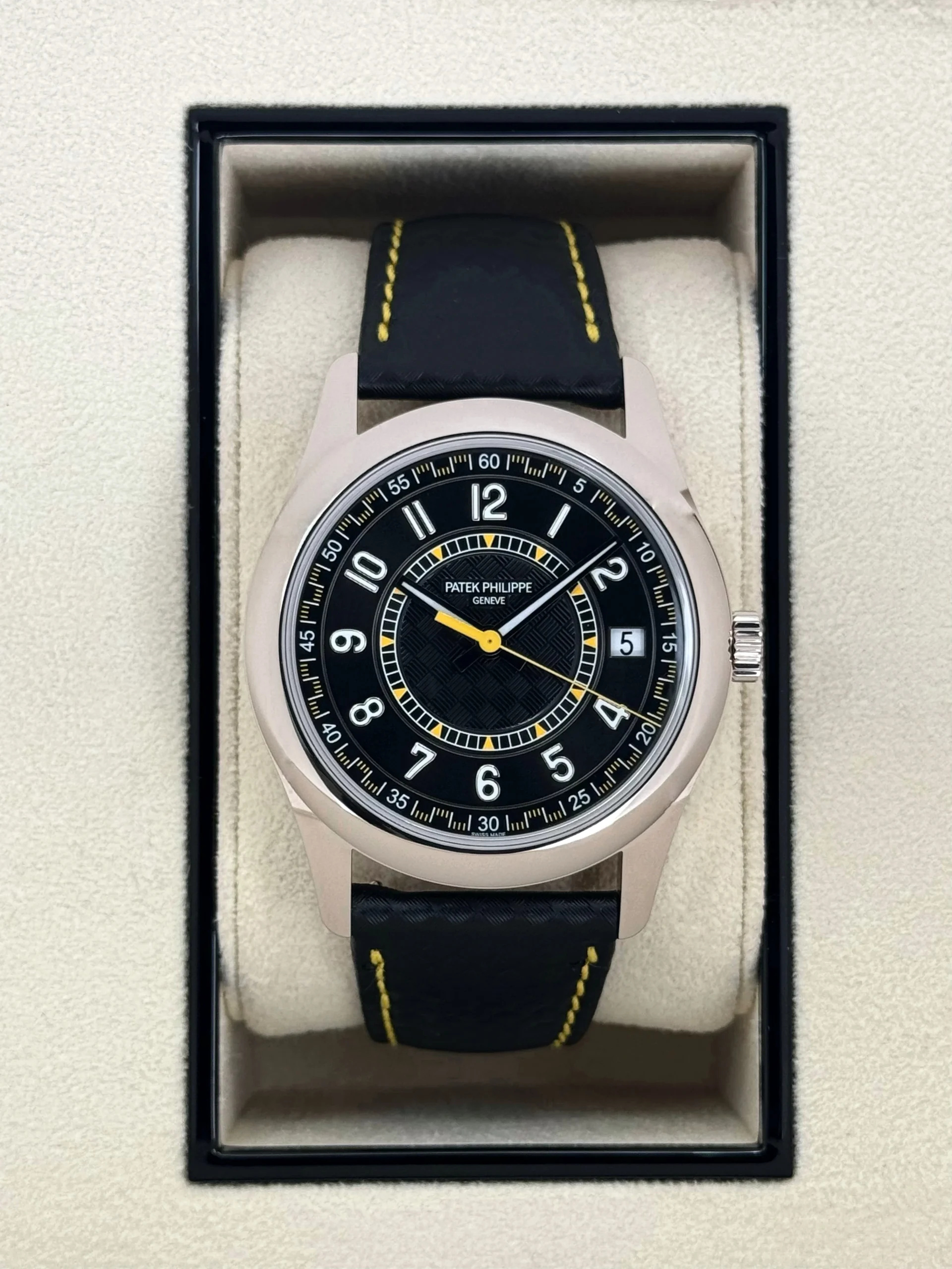 NEW 2024 Patek Philippe Calatrava 40mm 6007G White Gold Black Dial Yellow