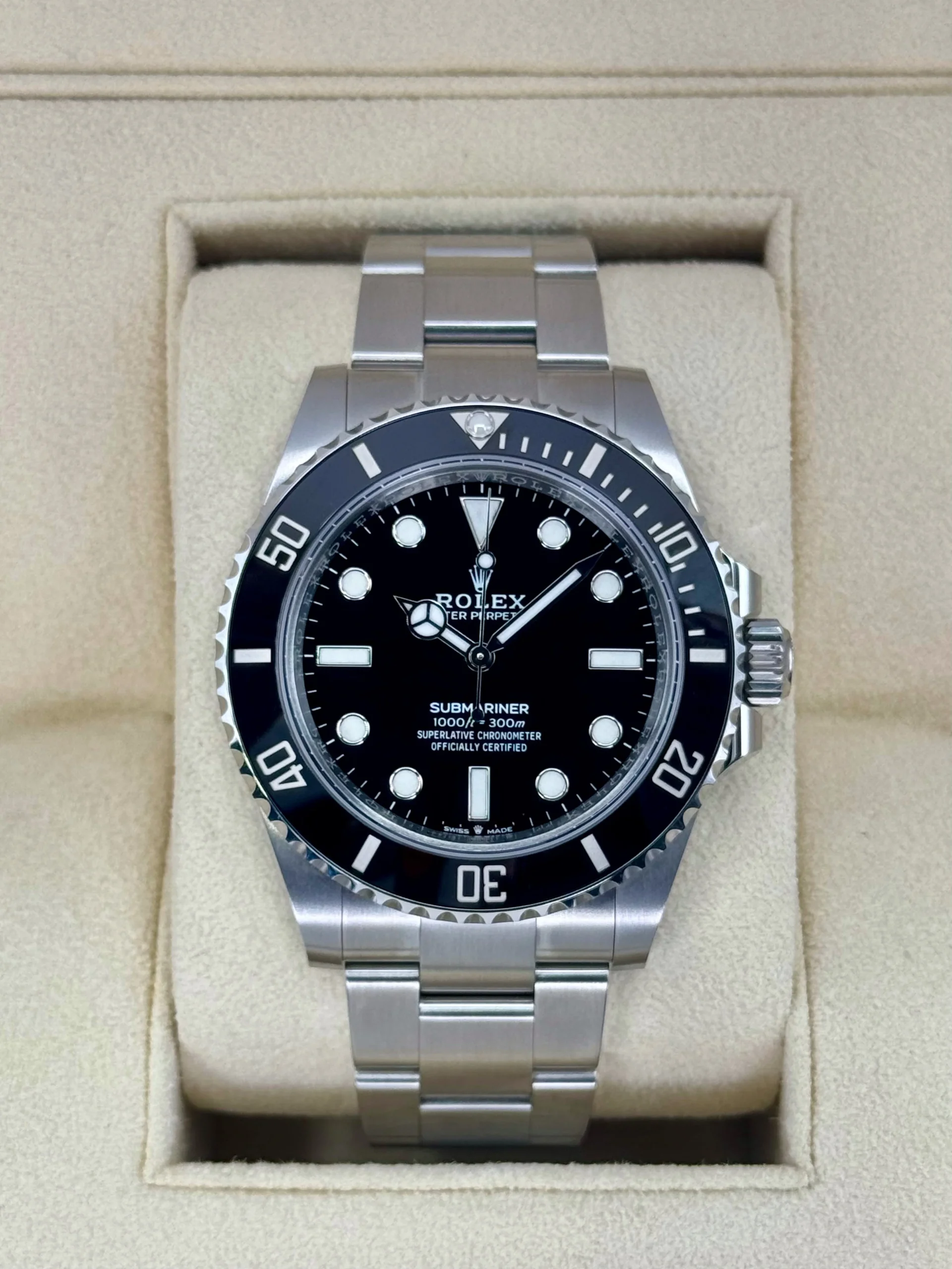 NEW 2024 Rolex No Date Submariner 41mm 124060 Stainless Steel Black Dial Oyster Bracelet fitted with Glidelock