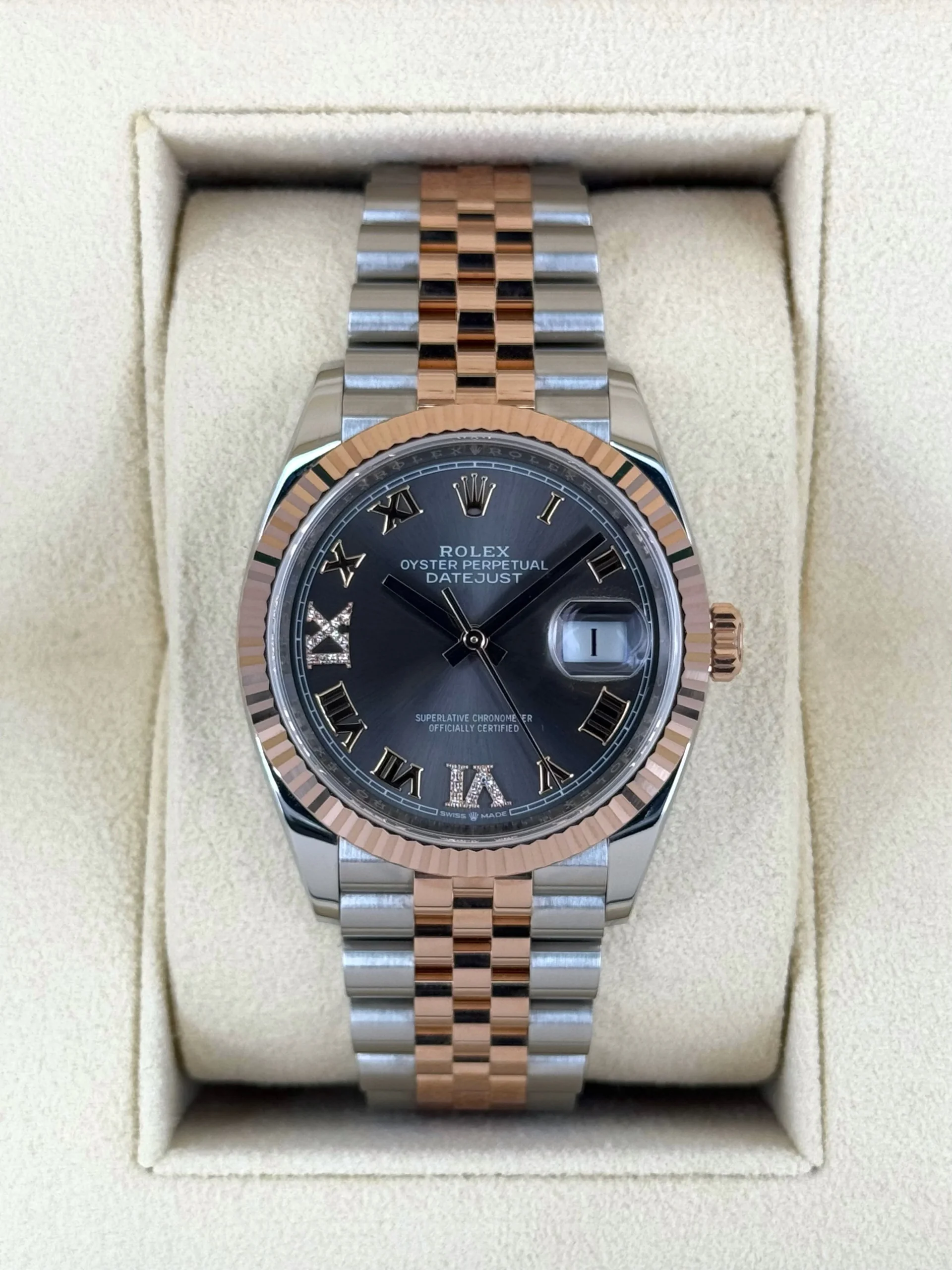 NEW 2025 Rolex Datejust 36mm 126231 Two-Tone Oystersteel and Everose Gold Jubilee Bracelet with a Slate Rhodium Grey Dial with Diamonds on 6 & 9