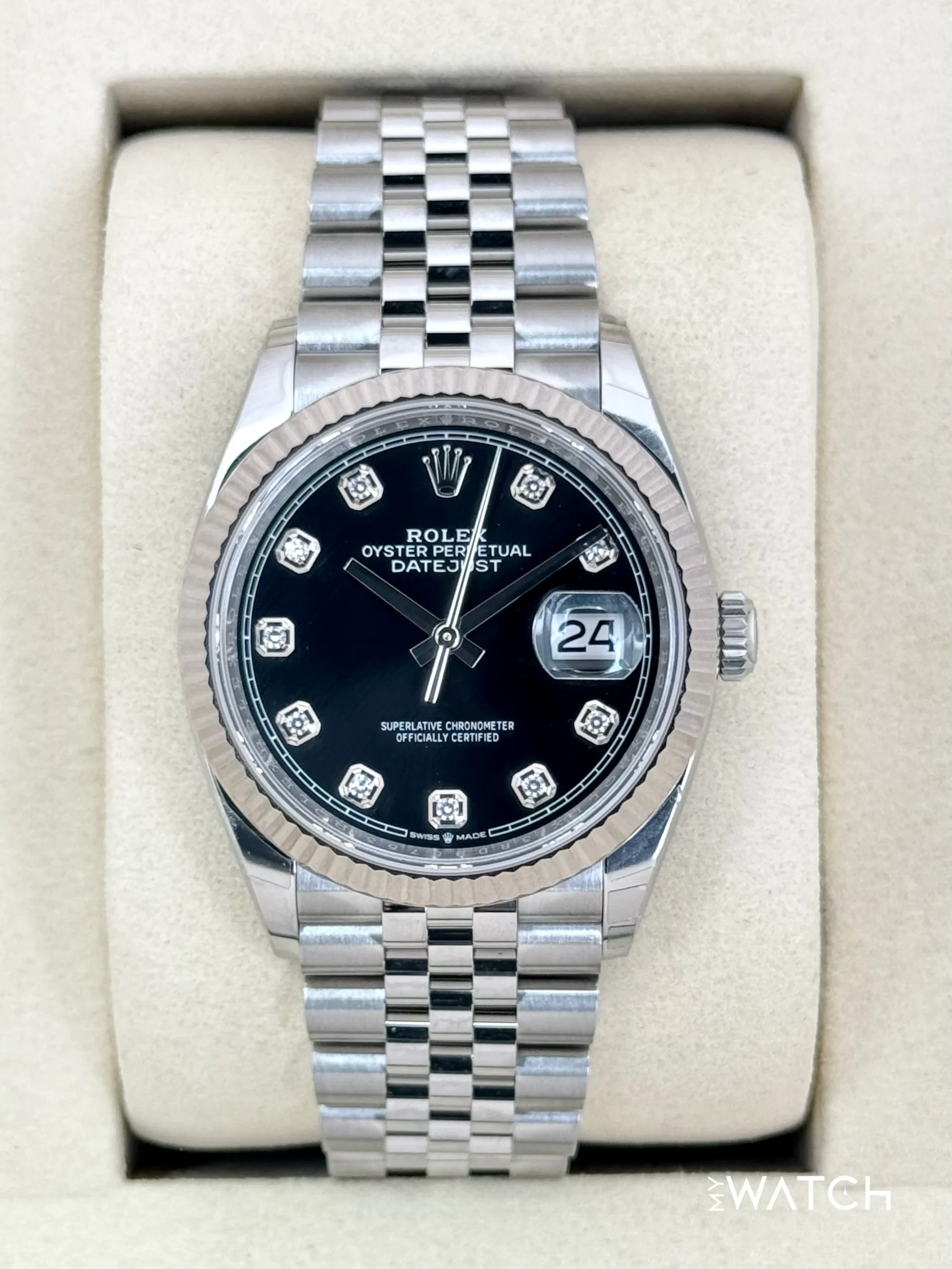NEW 2025 Rolex Datejust 36mm 126234 Stainless Steel and 18k White Gold Fluted Bezel Jubilee Bracelet Black Diamond Dial
