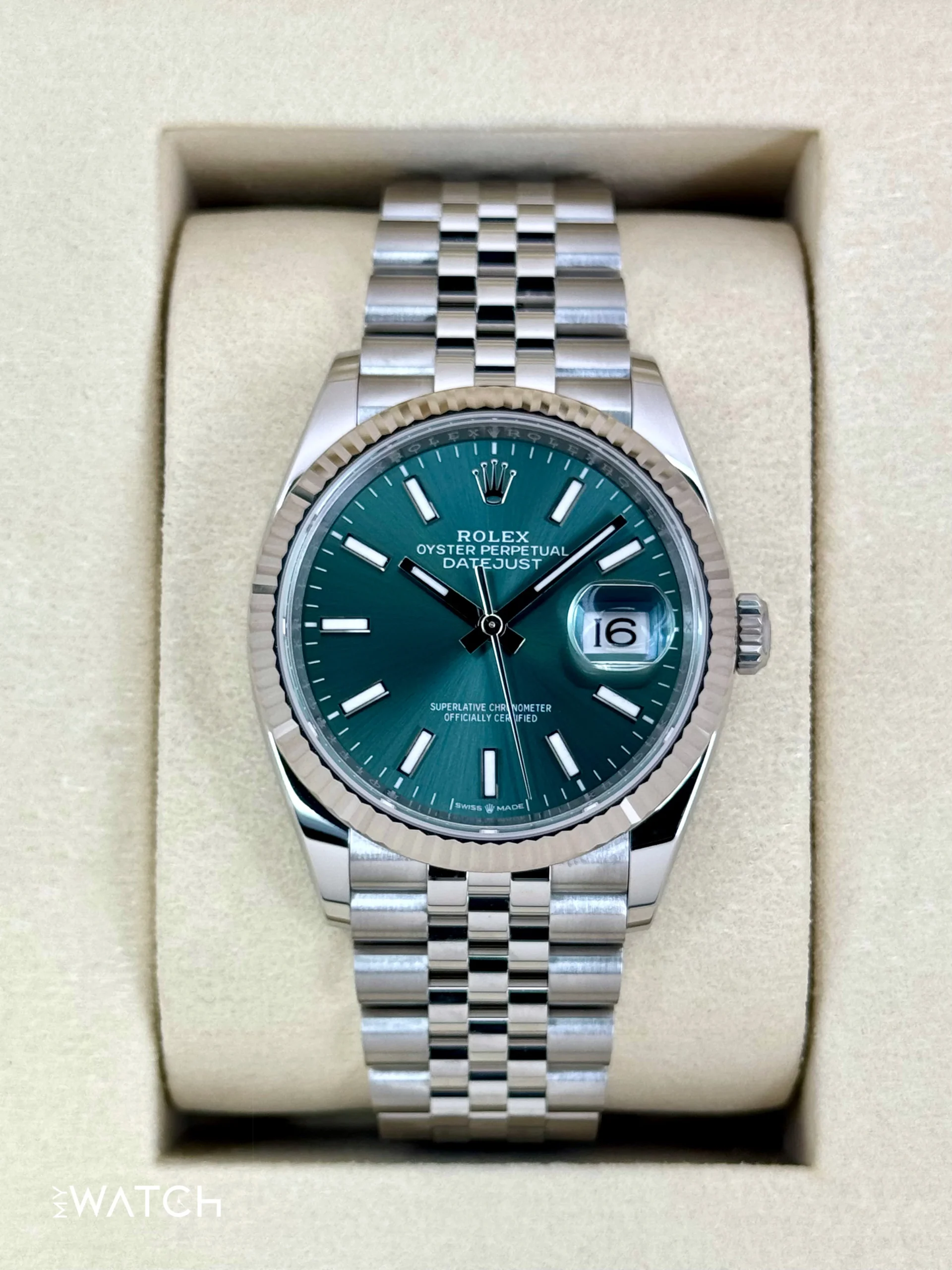 NEW 2025 Rolex Datejust 36mm 126234 Stainless Steel and 18k White Gold Bezel Jubilee Bracelet Green Dial