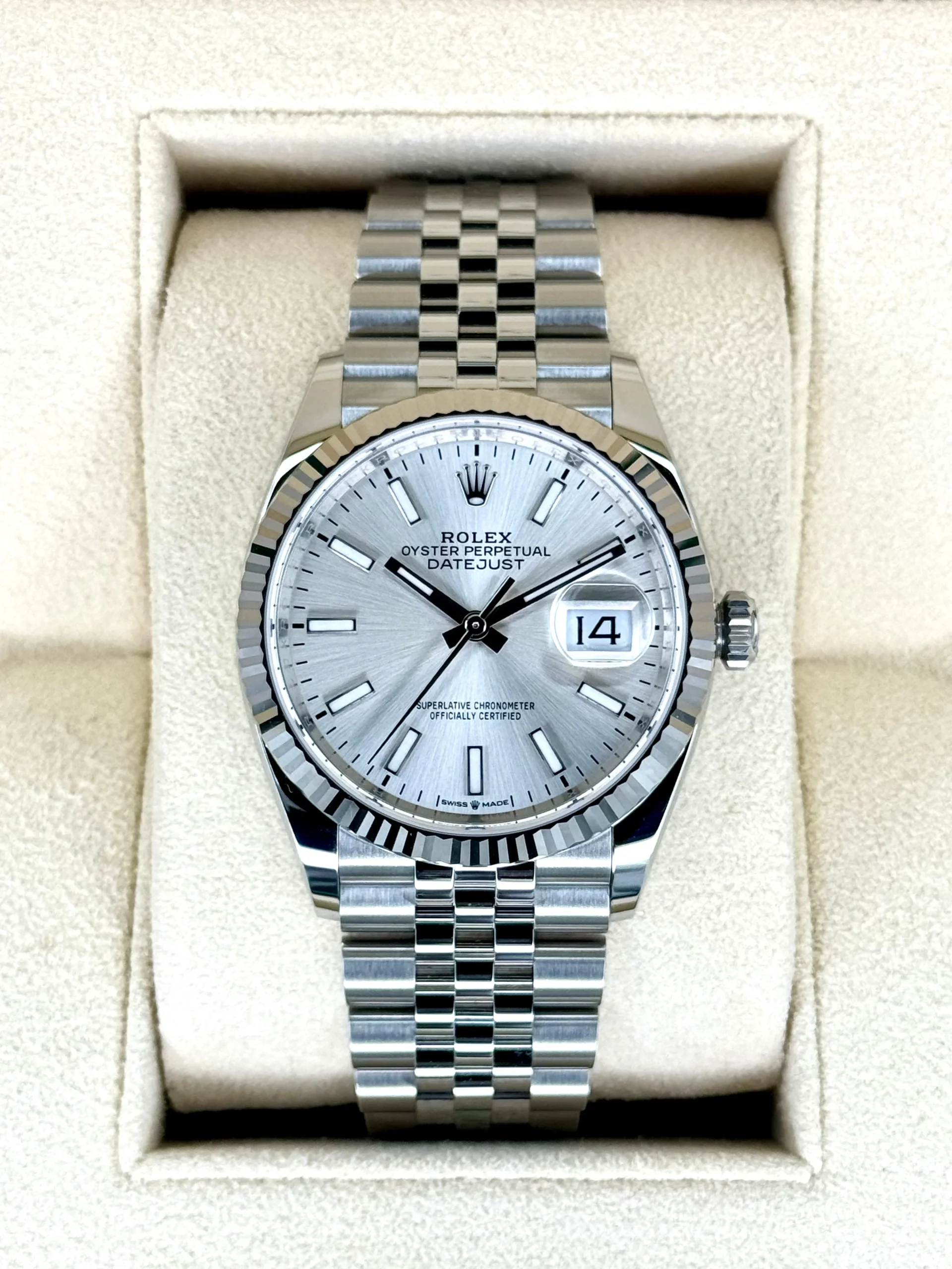 NEW 2025 Rolex Datejust 36mm 126234 Stainless Steel and 18k White Gold Fluted Bezel Jubilee Bracelet Silver Dial