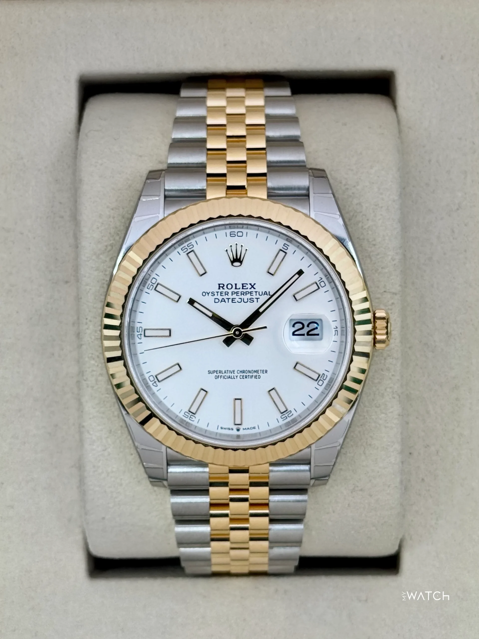 NEW 2025 Rolex Datejust 41mm 126333 Two-Tone “Yellow Rolesor” Stainless Steel and 18kt Yellow Gold Fluted Bezel Jubilee Bracelet White Dial