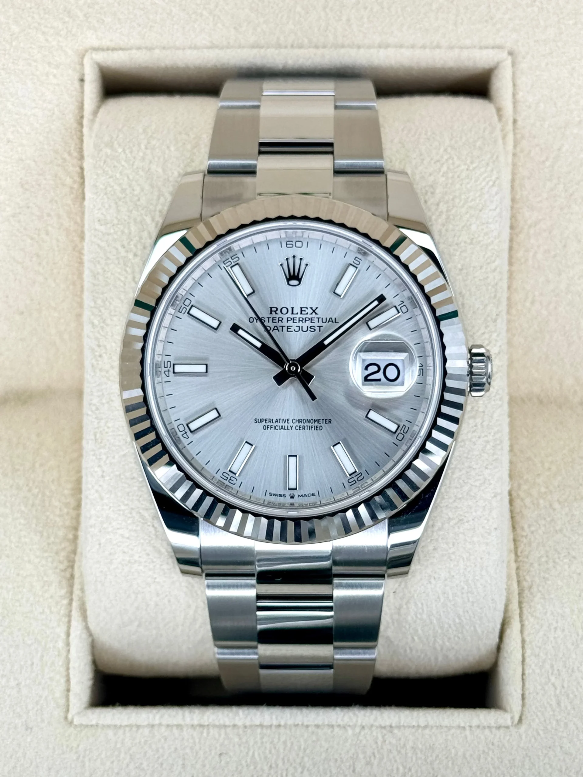 NEW 2025 Rolex Datejust 41mm 126334 Stainless Steel and 18k White Gold Fluted Bezel Oyster Bracelet Silver Dial