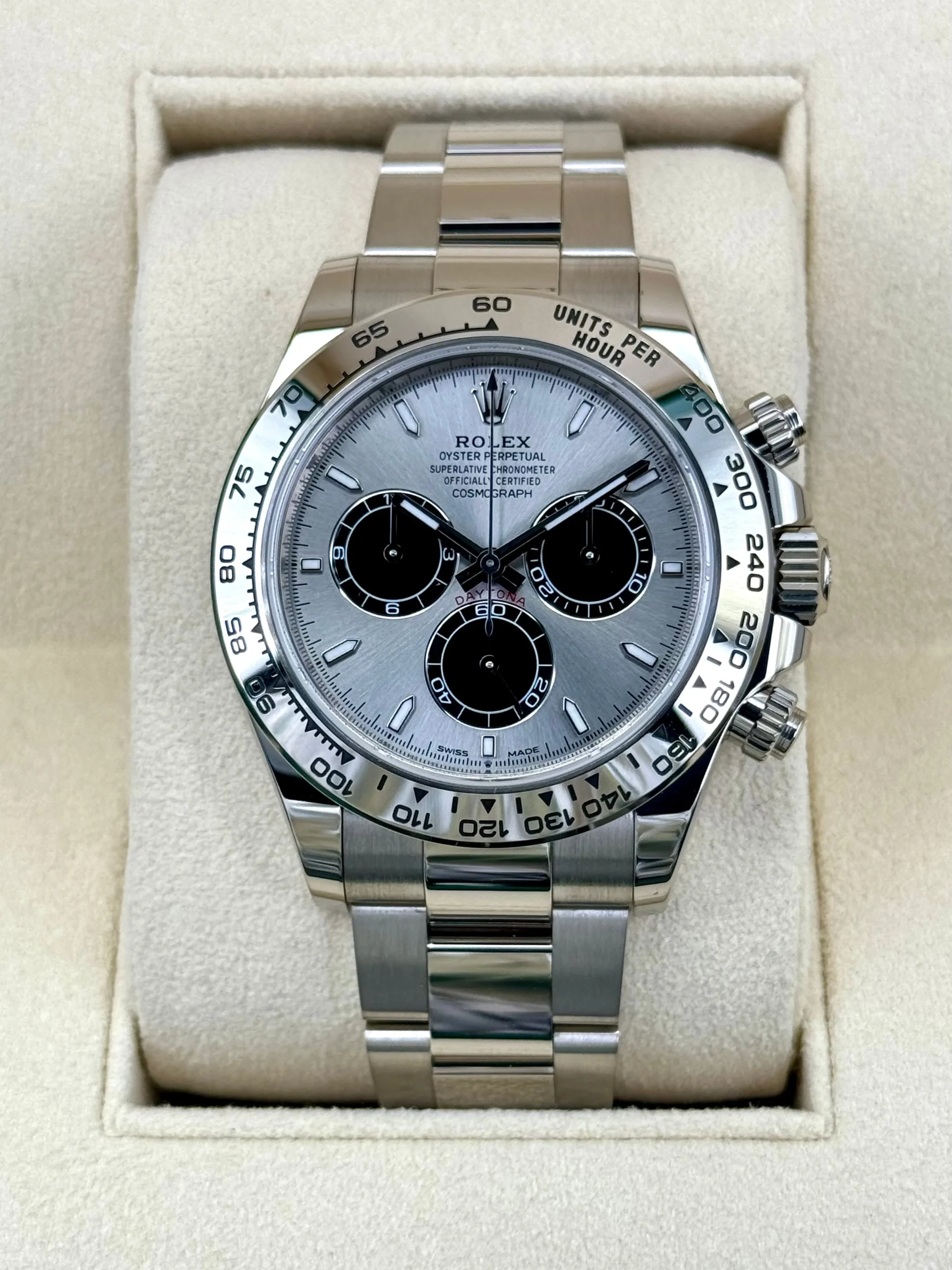 NEW 2025 Rolex Cosmograph Daytona 40mm 126509 18k White Gold Silver Ghost Dial Oyster Bracelet