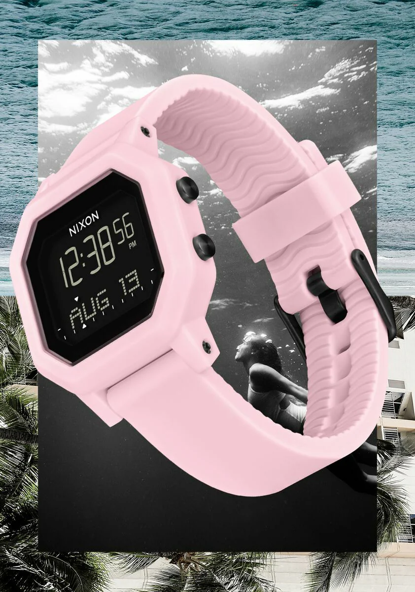 Custom-molded TR90 case with stainless steel caseback and gasket pushers.