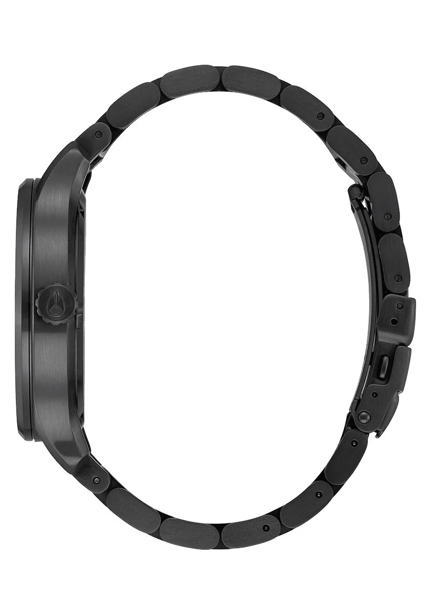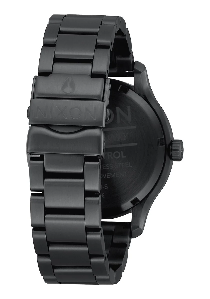 Features surf-standard 100m waterproof rating, custom, solid stainless steel case, and hardened mineral crystal.