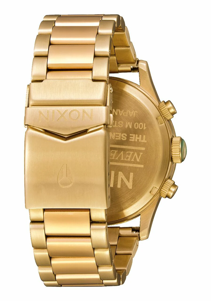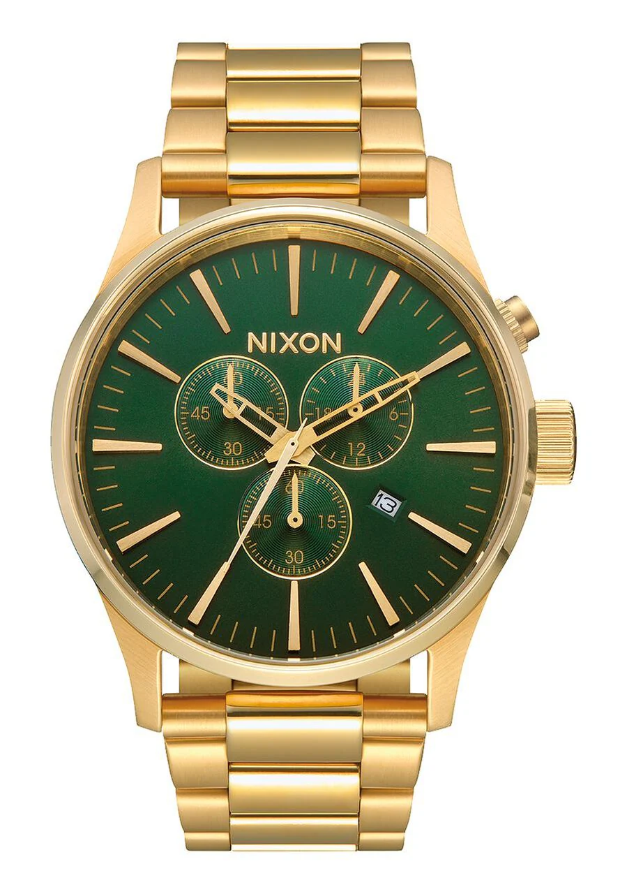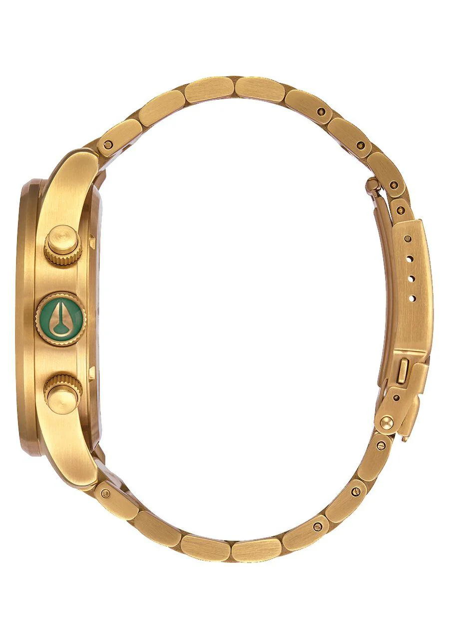 A timeless 42 mm design with the modern Nixon twist of faceted applied hour indices