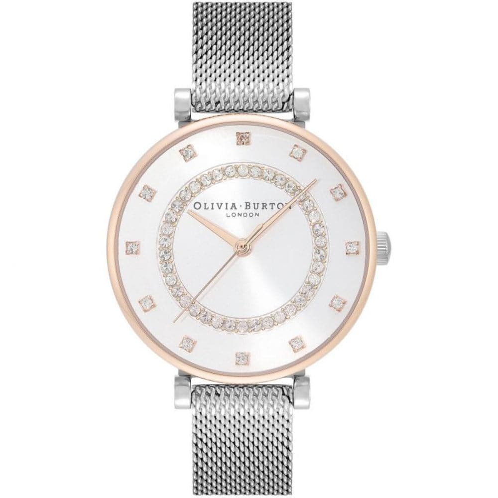 Olivia Burton Belgrave White and Two-Tone Mesh Strap Women Watch 24000004