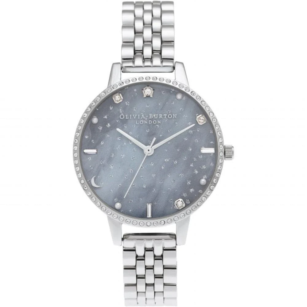 Inspired by all that sparkles in the night sky, we’ve updated our Celestial collection with this stand out style. Featuring a sprinkling of sparkles, a Swarovksi embellished bezel and a dramatic swirling 34mm dial, this is a must-have for all silver lovers.