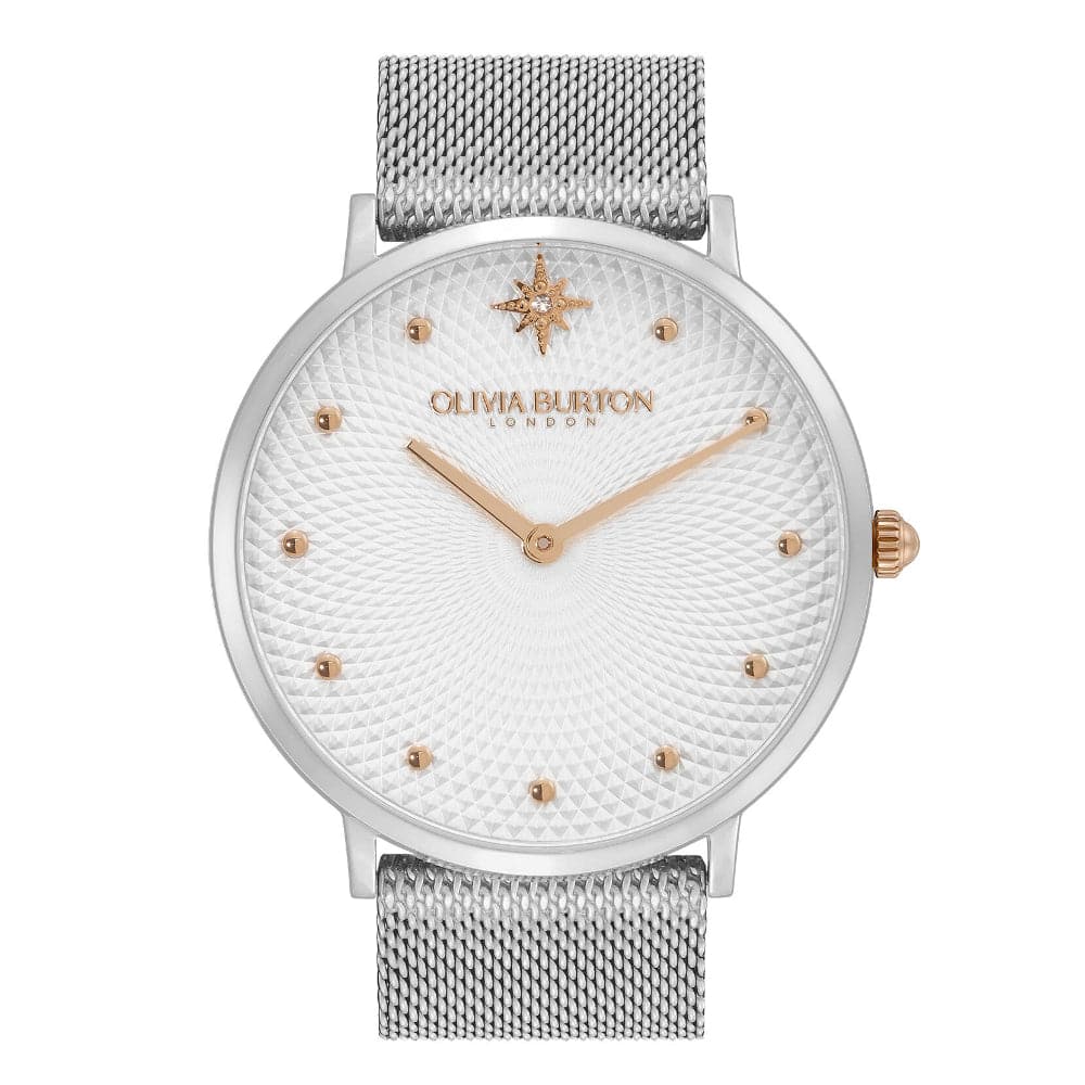 An escape to the cosmic, this slimline Celestial watch merges sophistication and playfulness. We’ve paired a modern mesh strap with a 40mm mixed metal dial for a sleek yet statement look – adding a North Star crystal marker for a touch of celestial shimmer. The intricate guilloche detailing creates an otherworldly feel to the dial for an eye-catching, mystical finish. It’s time to release your cosmic nature.