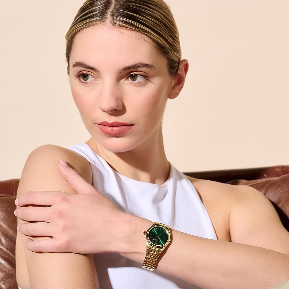 Introducing the Sports Luxe Hexa: a watch inspired by effortless British elegance and iconic city architecture. The angular case promises a sleek look on the wrist, complemented by a classic gold and emerald-green colourway. A contemporary design with subtle crystal decorations – made to evoke an opulent yet sophisticated feel.