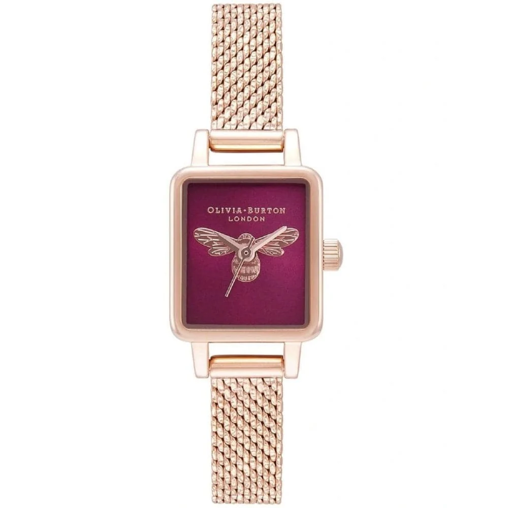 Sleek and luxe, this Lucky Bee timepiece offers a classic silhouette with those all-important contemporary touches. The mini rectangle dial has a deep, berry sunray finish that catches the light as you move. Complete with a complementing rose gold bee motif and the matching mesh strap, this regal style will pair up perfectly with our jewel-toned jewellery pieces.