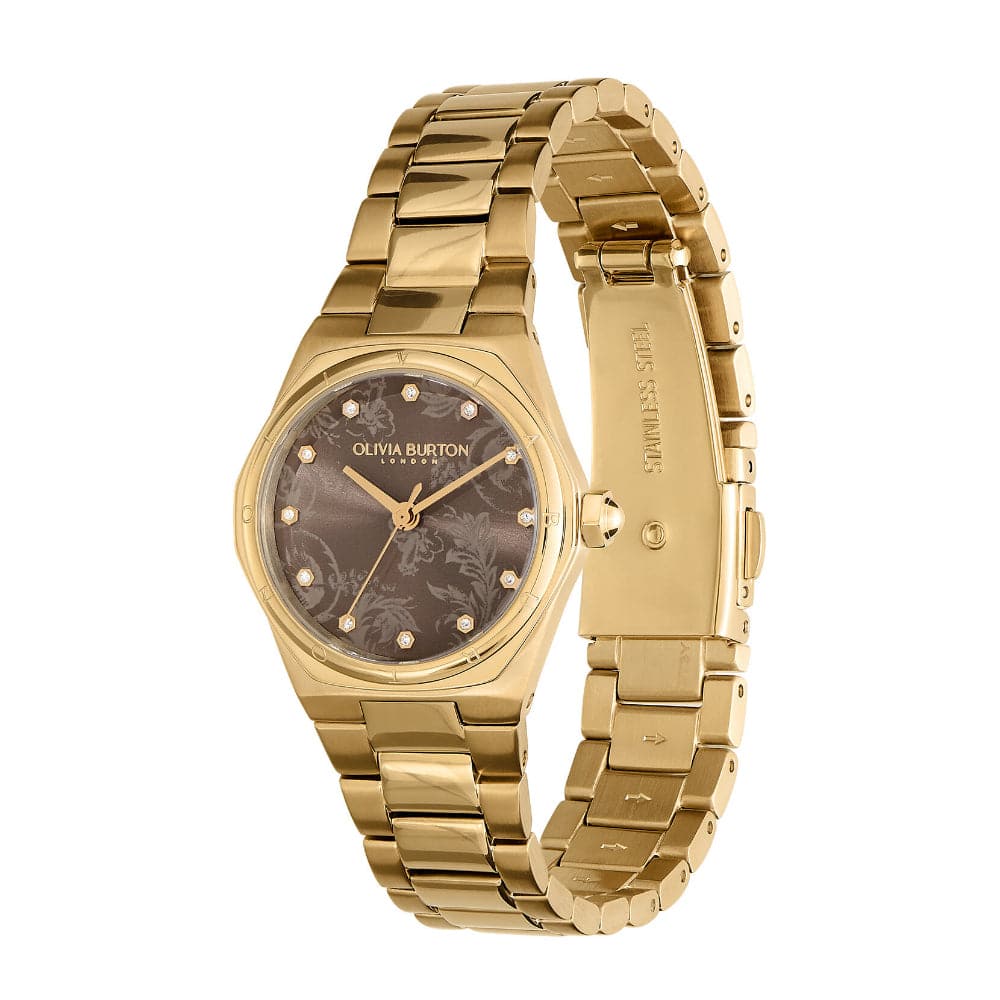 Introducing sports luxe like you’ve never seen it before. The Mini Hexa watch is the latest addition to our Sports Luxe collection and fuses pretty and sporty in one effortless design. A detailed floral print inspired by classic English interiors adorns a 28mm dial in on-trend mushroom and studded with crystal markers. The gold-plated integrated bracelet strap and modern case give a classic, sporty feel to feminine details. It’s chic-meets-sport and you’re not going to want to take it off.