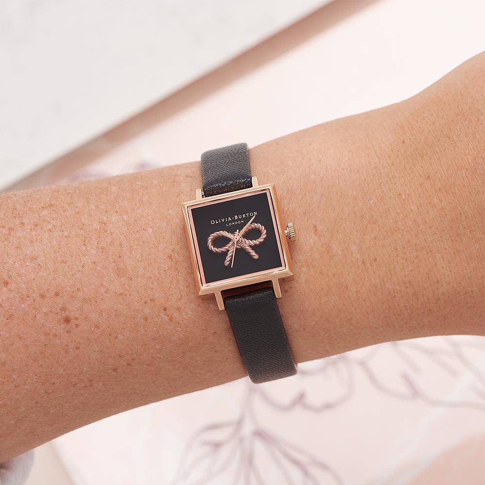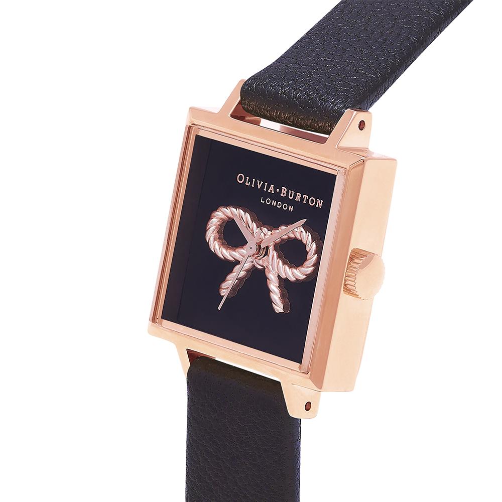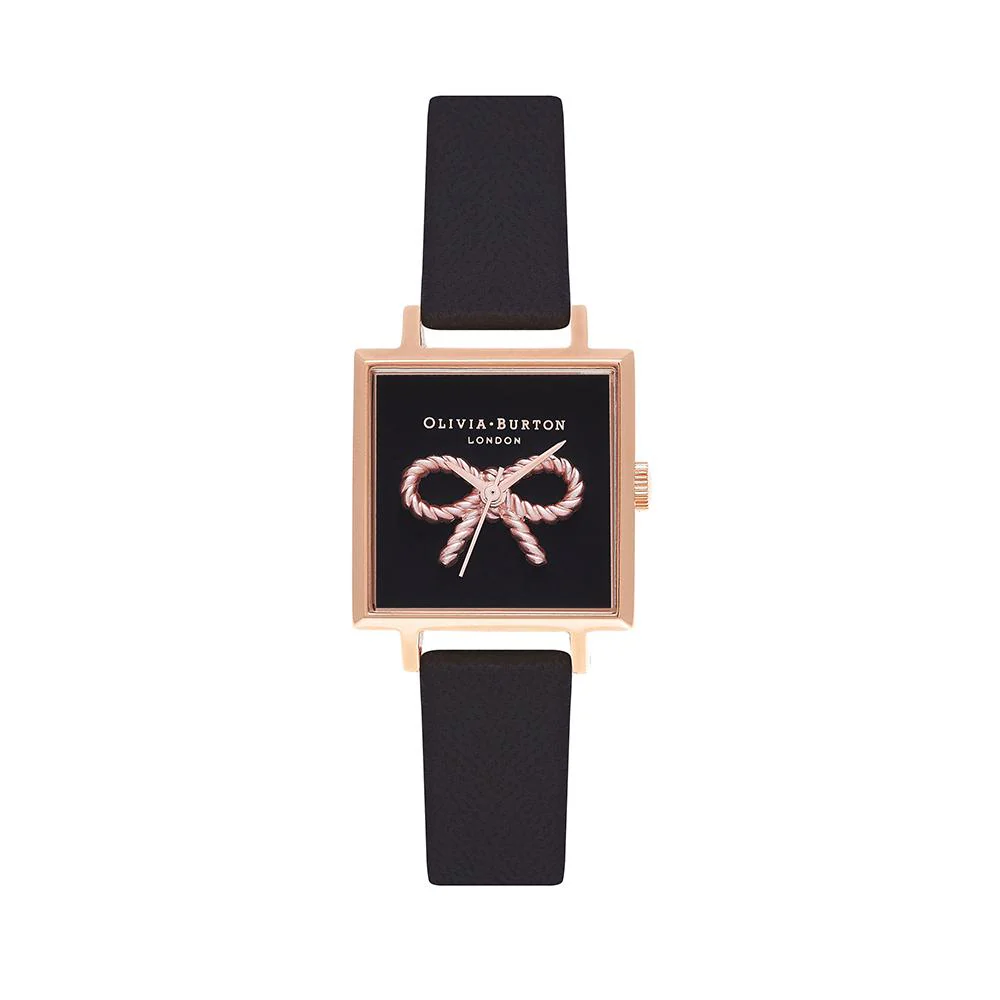 Olivia Burton Vintage Bow Rose Gold Black Watch – Rose Gold