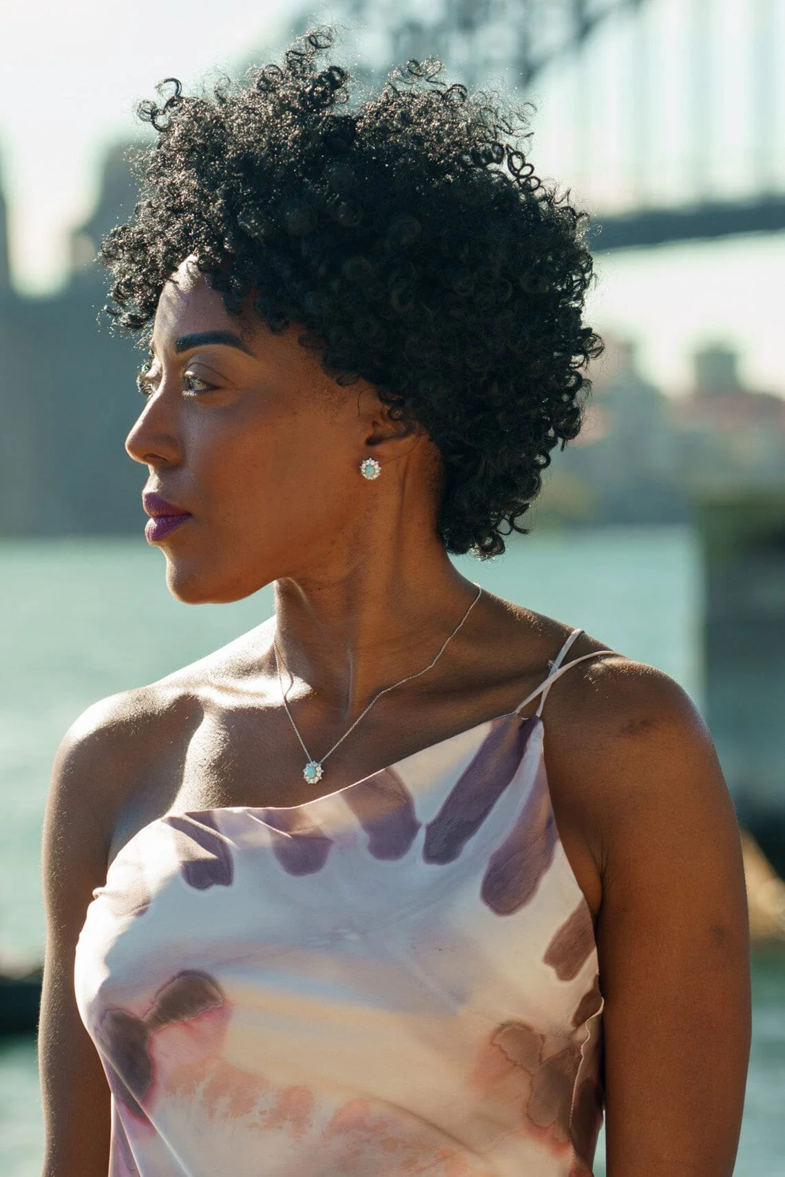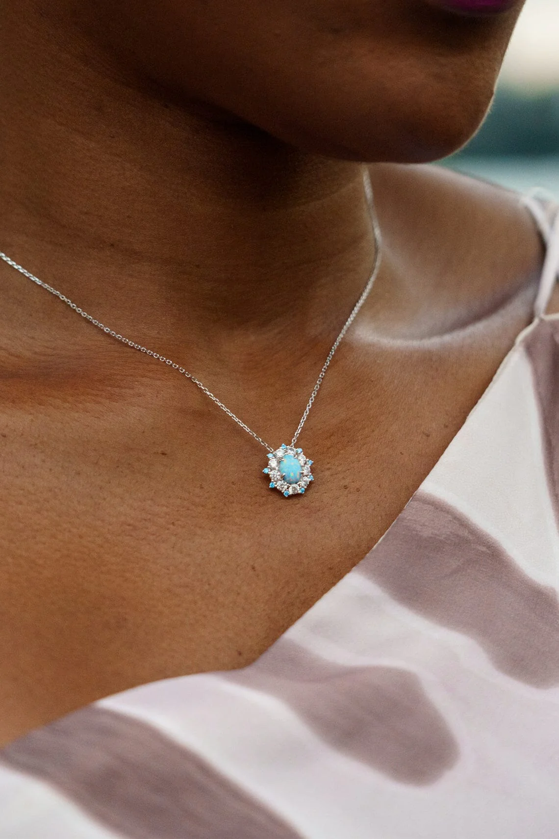 The Barangaroo Pendant from the Opal Glow Collection draws inspiration from the waters of Sydneys iconic harbour. Featuring a stunning oval created blue opal surrounded by sparkling white and blue cubic zirconias, this pendant reflects the shimmering waves along the Barangaroo foreshore. Meticulously crafted from Rhodium-Plated 925 Sterling Silver, the pendant measures approximately 13.6mm wide and is elegantly suspended on a 41cm chain with a 4cm extension, capturing the beauty of this natural wonder in every detail. Designer Note: Barangaroo Reserve is a celebrated Sydney site, transformed from an industrial area into a natural haven. Opened in 2015, it features 75,000 native plants chosen to recreate the landscape as it existed before European colonisation in 1788. Named after Barangaroo, an influential Indigenous woman, the reserve combines nature with cultural significance. Its sandstone headland, crafted from excavated materials, and terraced gardens offer visitors a glimpse of Sydneys pre-colonial environment, making it both a public space and a tribute to Australia’s Indigenous heritage. Georgini acknowledges and pays respect to the past, present and future Traditional Custodians and Elders of this nation and the continuation of cultural, spiritual and educational practices of Aboriginal and Torres Strait Islander peoples.