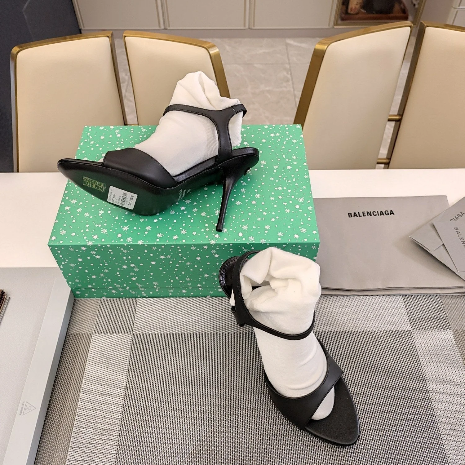 OPEN TOE STRAPPY HIGH HEEL IN BLACK CALFSKIN