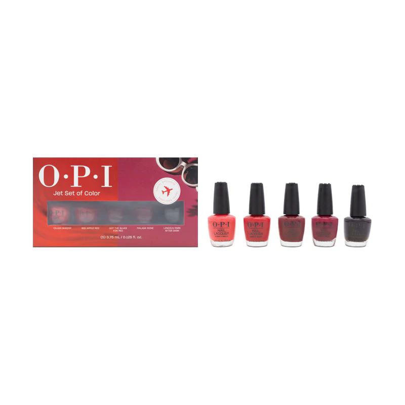 Discover the vibrant allure of the OPI Jet Set Of Colour Nail Polish Set, crafted to infuse your style with timeless elegance and chic appeal. Perfect for women who appreciate a bold statement, this collection features five captivating shades.
