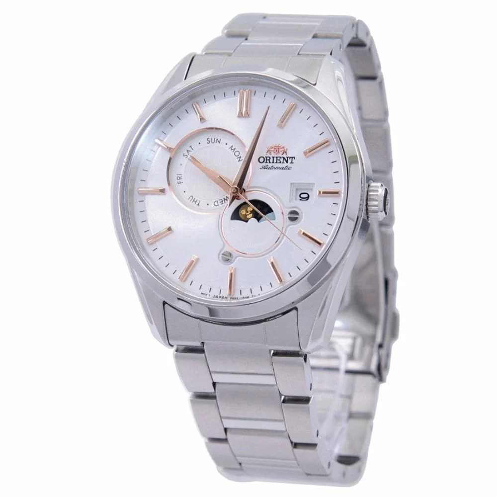 Orient Moonphase Silver Stainless Steel Strap Unisex Watch RA-AK0306S10B