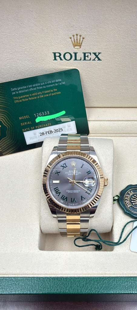 ROLEX TWO TONE DATE JUST WIMBLEDON YELLOW GOLD 41MM YEARS 2025 FULL SET M:126333 SERIAL:L14680A1