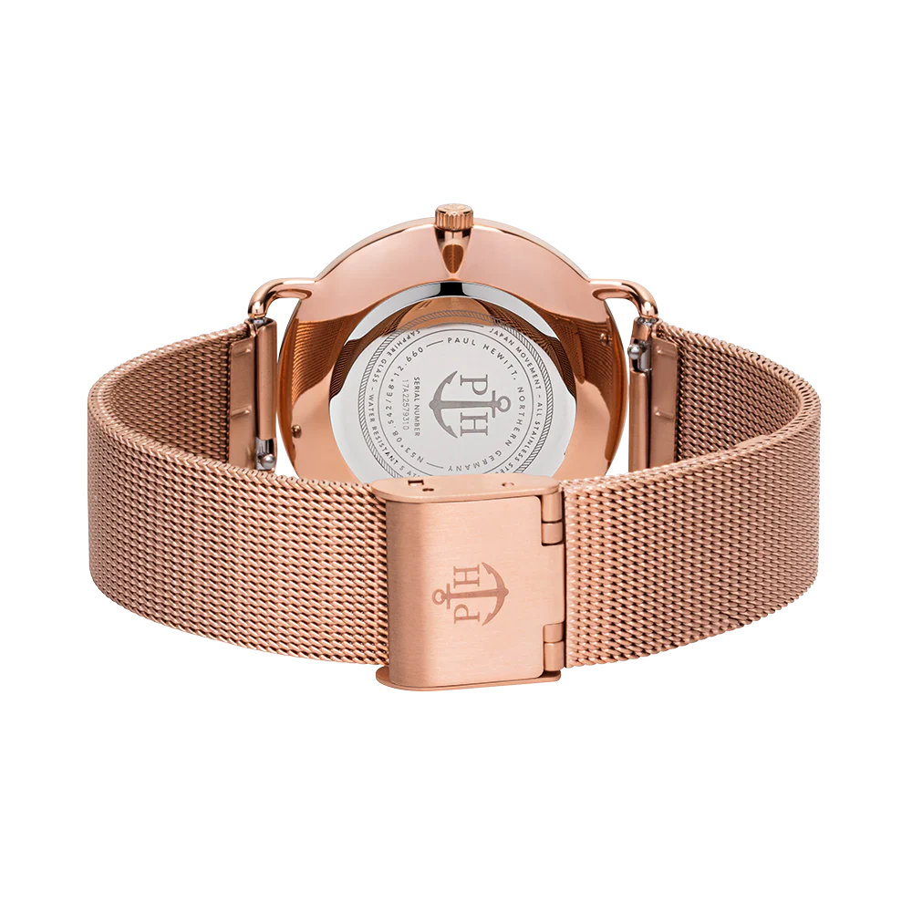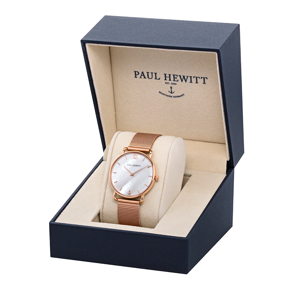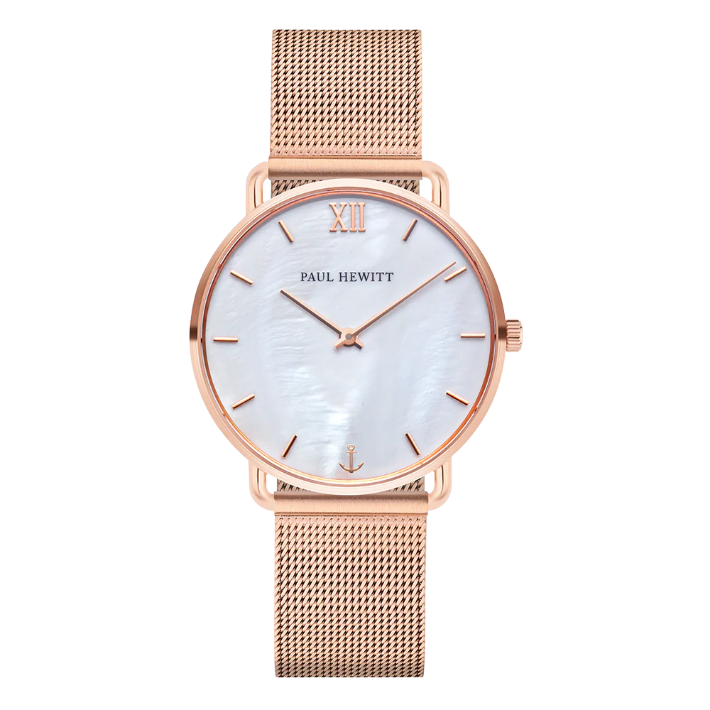 Discover the elegance of the Paul Hewitt Miss Ocean Pearl RG Mesh Watch, a stunning addition to any women’s watch collection. This exquisite timepiece features a 33mm stainless steel case ion-plated in rose gold, harmonizing beautifully with its captivating mother of pearl dial. Equipped with anti-scratch sapphire glass and a premium MIYOTA quartz movement, it promises both durability and precision. The 5 bar water resistance ensures that this watch is as versatile as it is stylish, making it perfect for urban adventures or seaside escapes. The comfortable mesh stainless steel strap, measuring 162 mm in length, completes its sophisticated look, embodying the spirit of the ocean while enhancing your daily style.