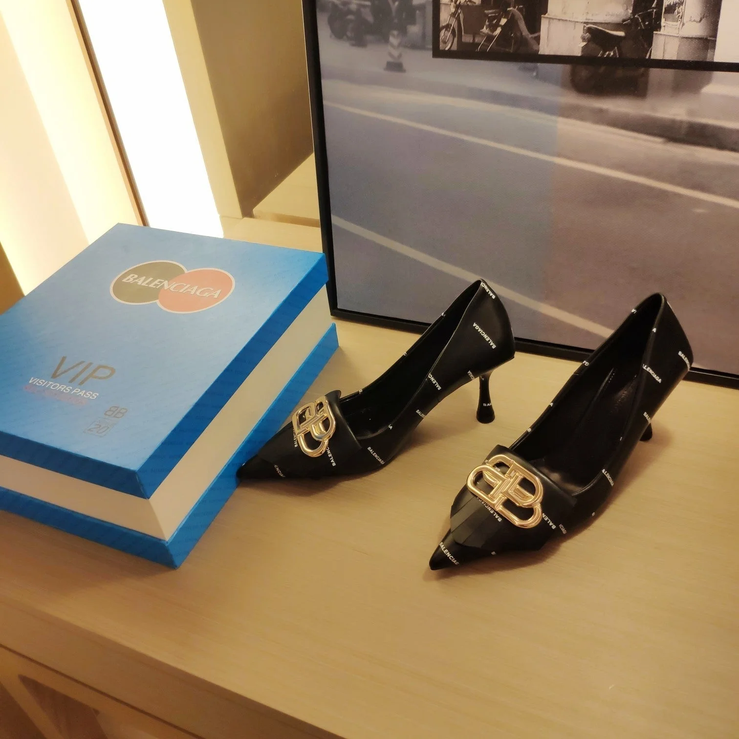 POINTED TOE PUMPS BLACK WITH LOGO PRINT SMOOTH CALFSKIN