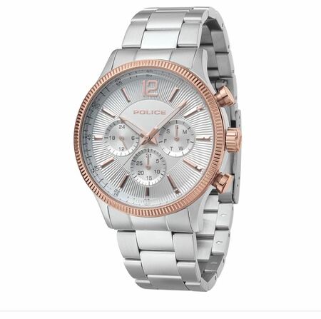 Water Resistance: 5 ATMBand Colour: SilverFrame Colour: Rose GoldBand Material: Stainless SteelDial Colour: Silver