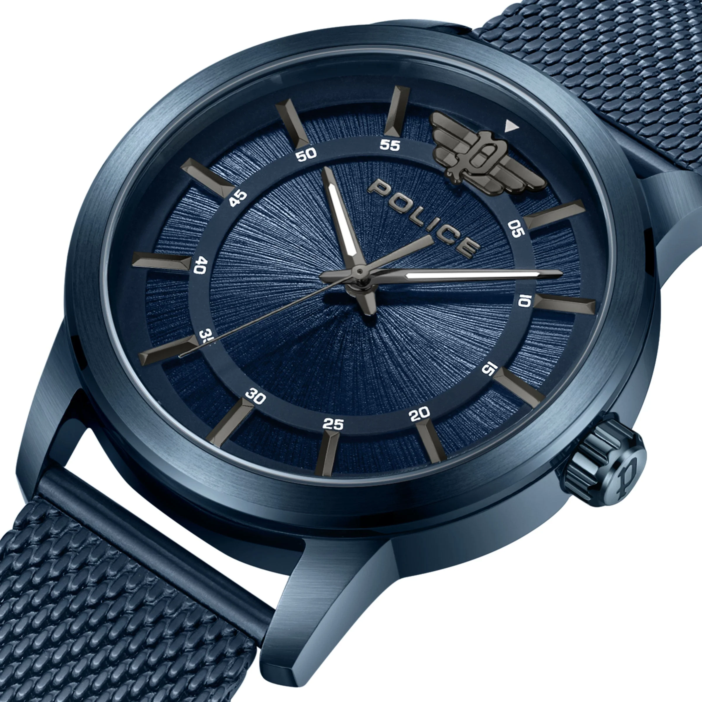 Introducing the Police Raho Men’s Watch, a masterful blend of urban style and exceptional functionality designed for the modern man who embodies metropolitan living. This striking timepiece is more than just a watch; it is a statement of sophistication and individuality, perfect for those who appreciate detail in every aspect of their lives. The bold design features a vibrant blue dial and matching stainless steel band, ensuring that the watch catches the eye while seamlessly integrating with both casual and formal wear.