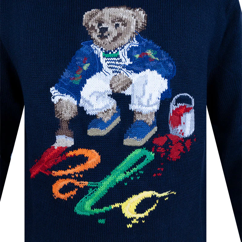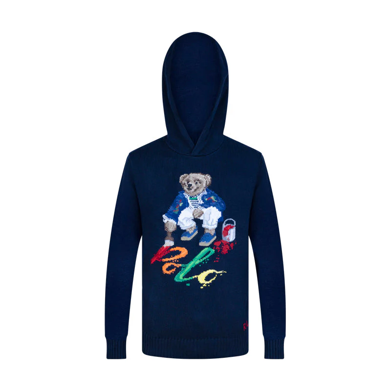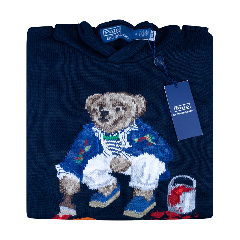 Polo Ralph Lauren Painting Bear Knitted Hoodie Navy Blue Men’s